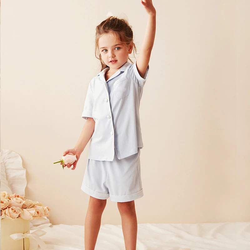 2 цвета, летние Пижамные комплекты с отложным воротником для девочек, детские шорты, пижамный комплект с рукавами, домашняя одежда для сна для девочек, детская одежда