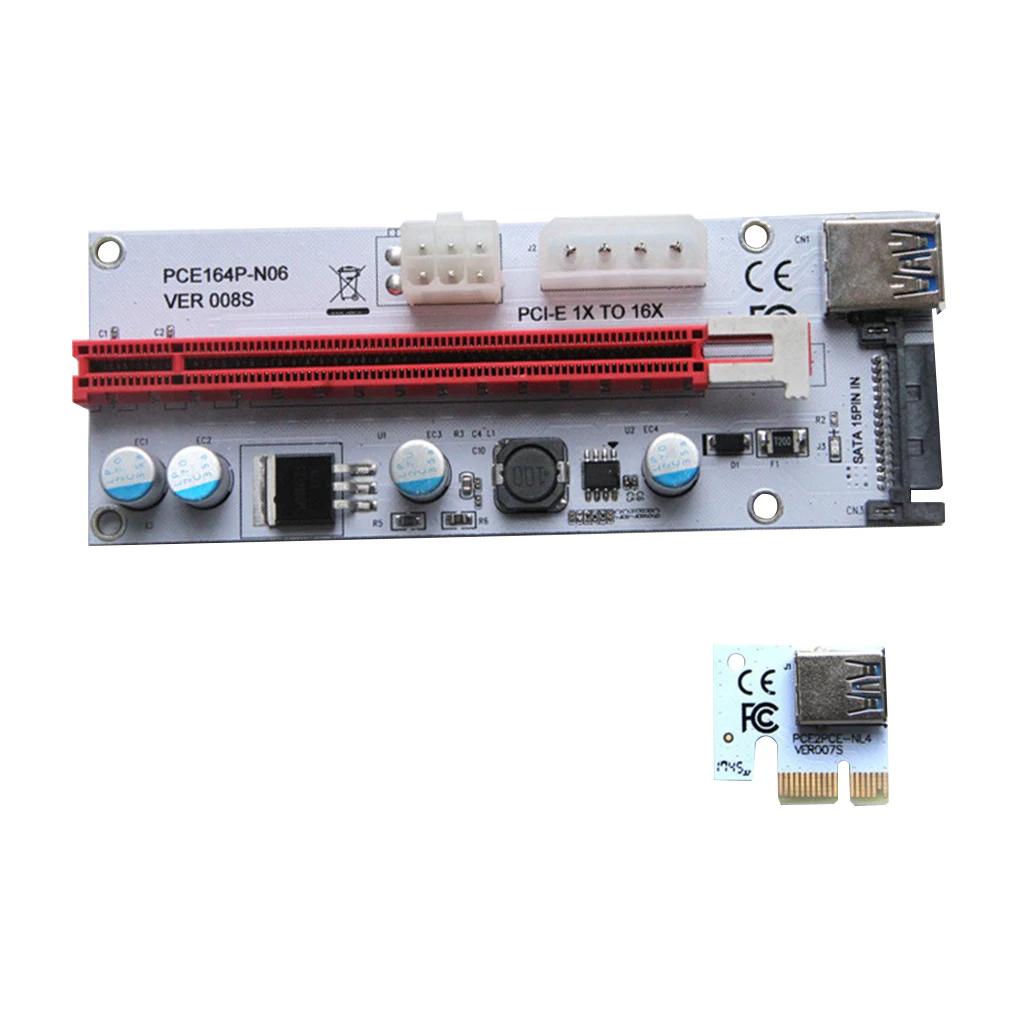 Новая карта расширения 008s VER008S 3 в 1 Molex 4Pin SATA 6PIN PCIE PCI-E PCI Экспресс-адаптер 1X 16X USB3.0 удлинитель для