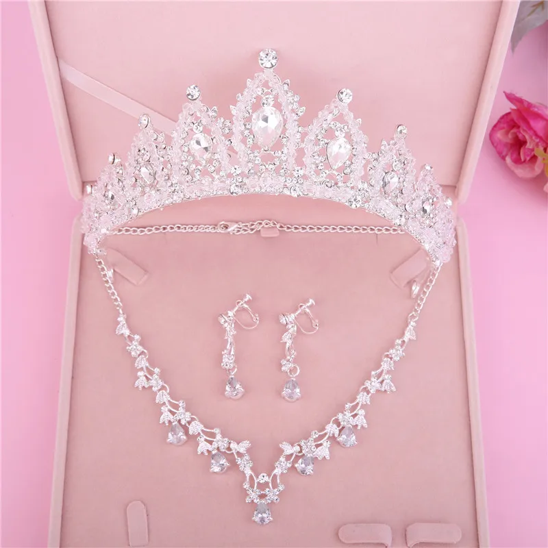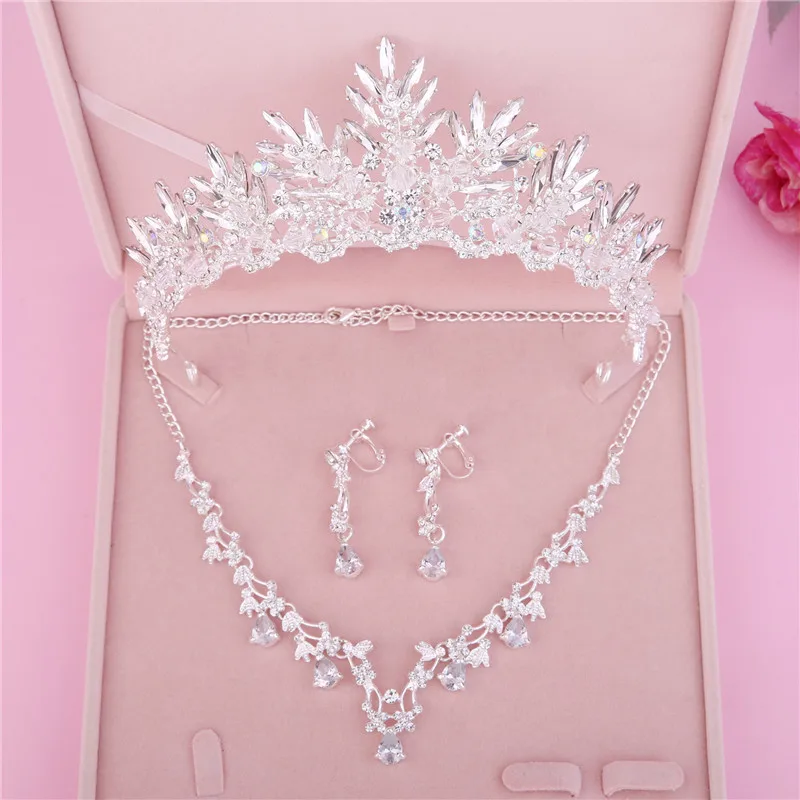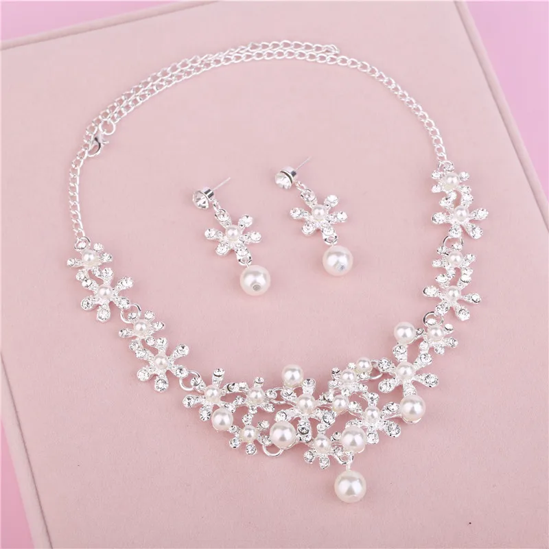 Свадебный ювелирный набор Стразы ювелирные изделия ожерелье наборы для женщин Хрустальная серьга с жемчугом Свадебные Ювелирные наборы корона тиара невесты