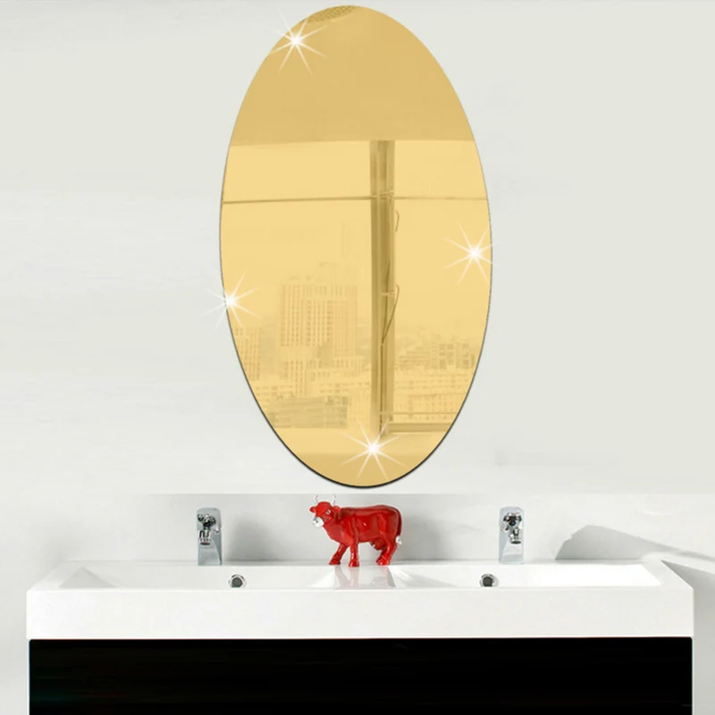 Настенная Наклейка 3D зеркальный эффект съемный прямоугольный Оваль...