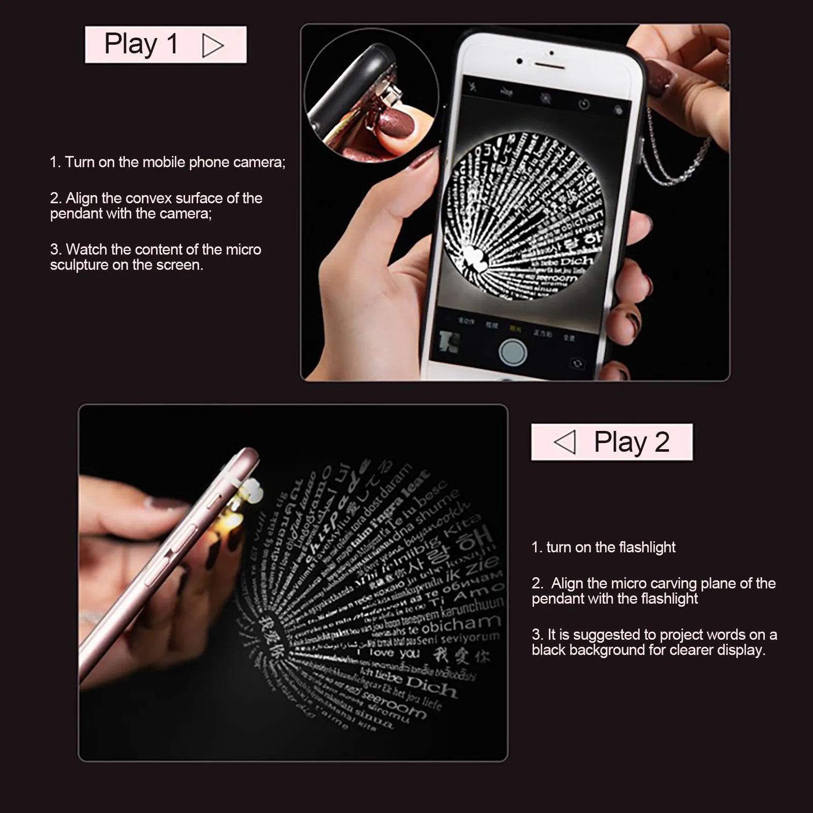 Это проективное ожерелье используется Технология нано-микро гравировки для гравировки «Я тебя люблю» в 100 различных Языки в камень любви, выражая любовь и искренность, дайте Удивите того, кого вы любите. Два метода, чтобы найти настоящую любовь.Подарок, который лучше всего выразить Любовь