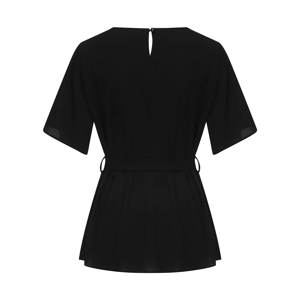 4 # размера плюс Блузы chic Однотонная одежда женские готические ботильоны футболка с короткими рукавами блузки рубашка поясом бантом для отдыха Блузки Топы