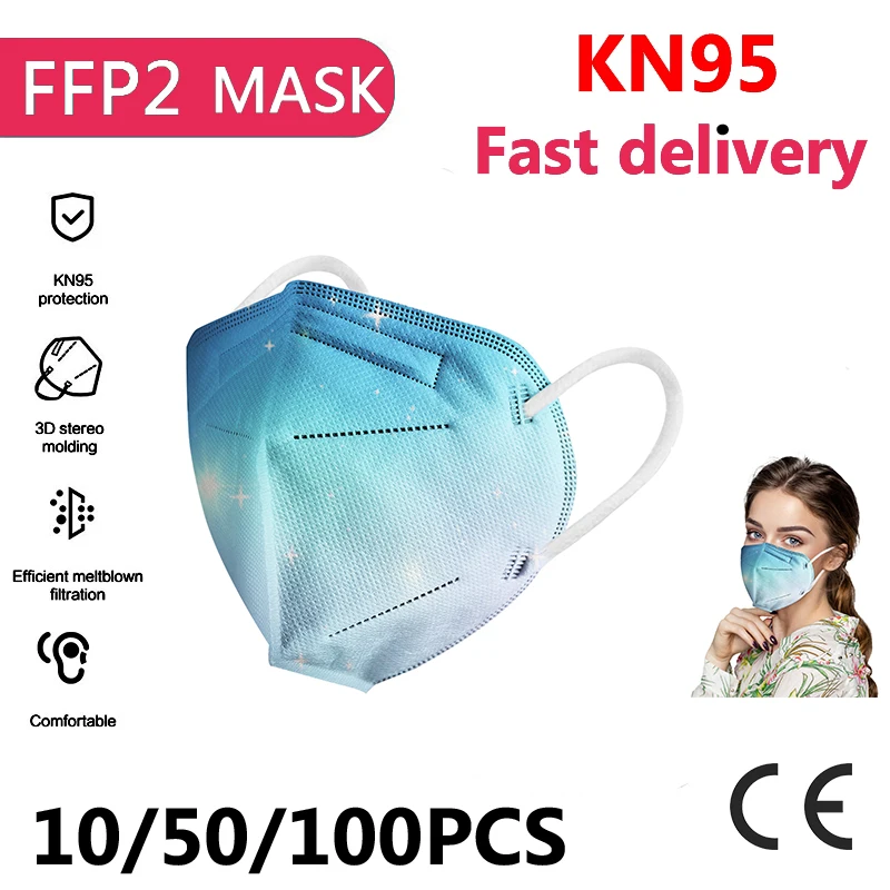 10-100 шт. KN95 Mascarillas FFP2 многослойный 5-слойный защитный фи...