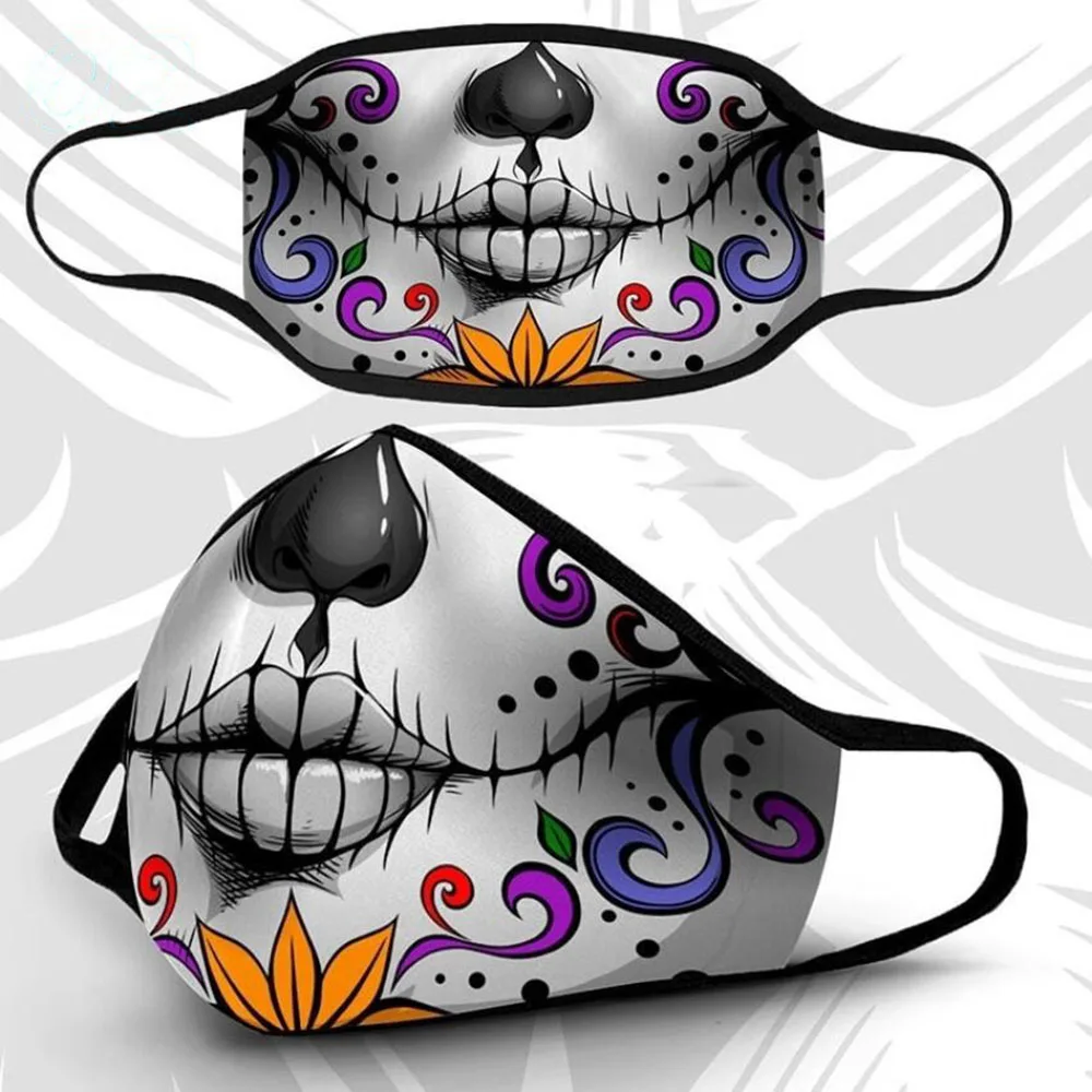 Дышащая Маска на Хэллоуин для мужчин и женщин, День мертвых, защита лица для взрослых, Пылезащитная, уличная, маски унисекс