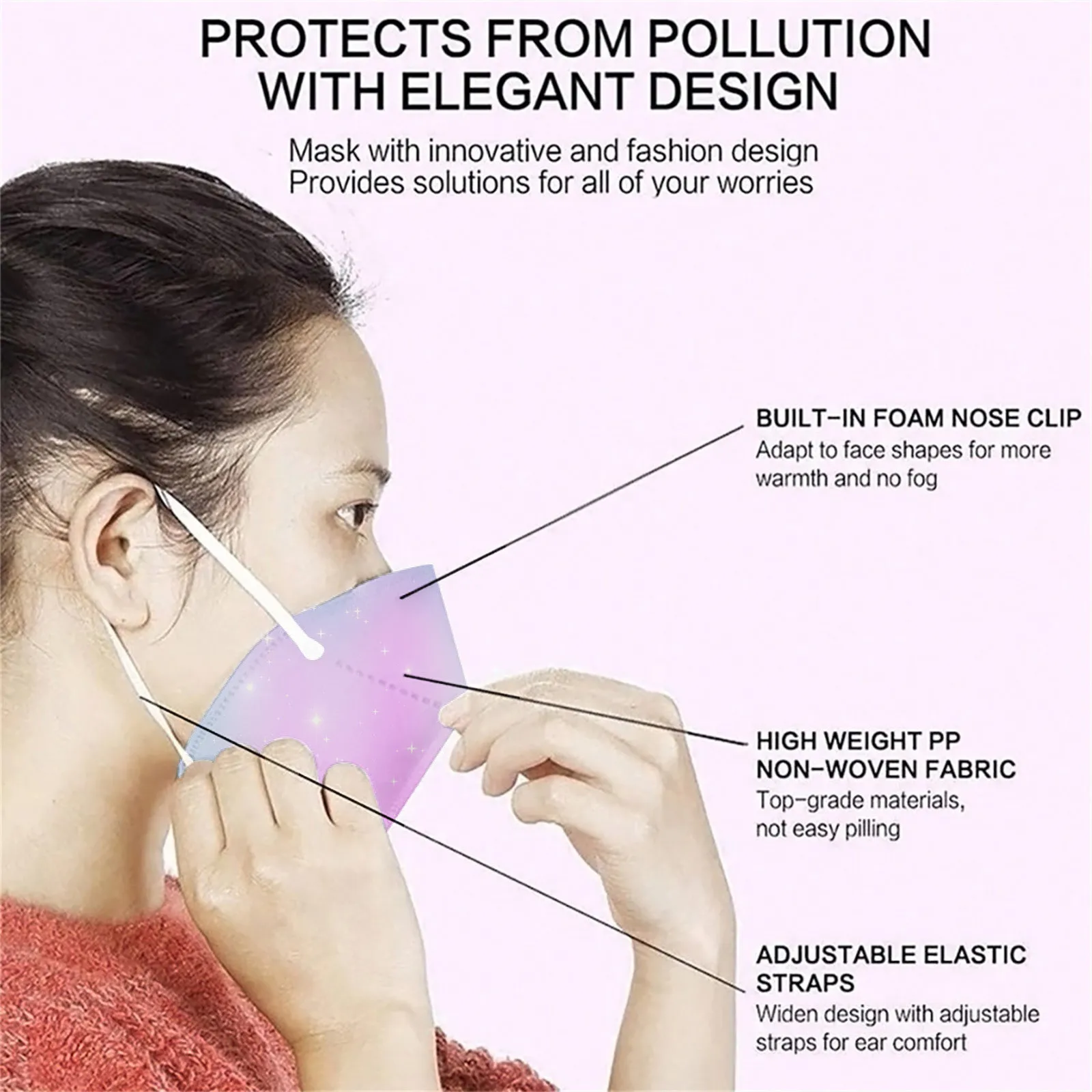 Маска KN95 FFP2 для лица, 5 цветов, 100 шт., мягкая, фильтрация 95%...