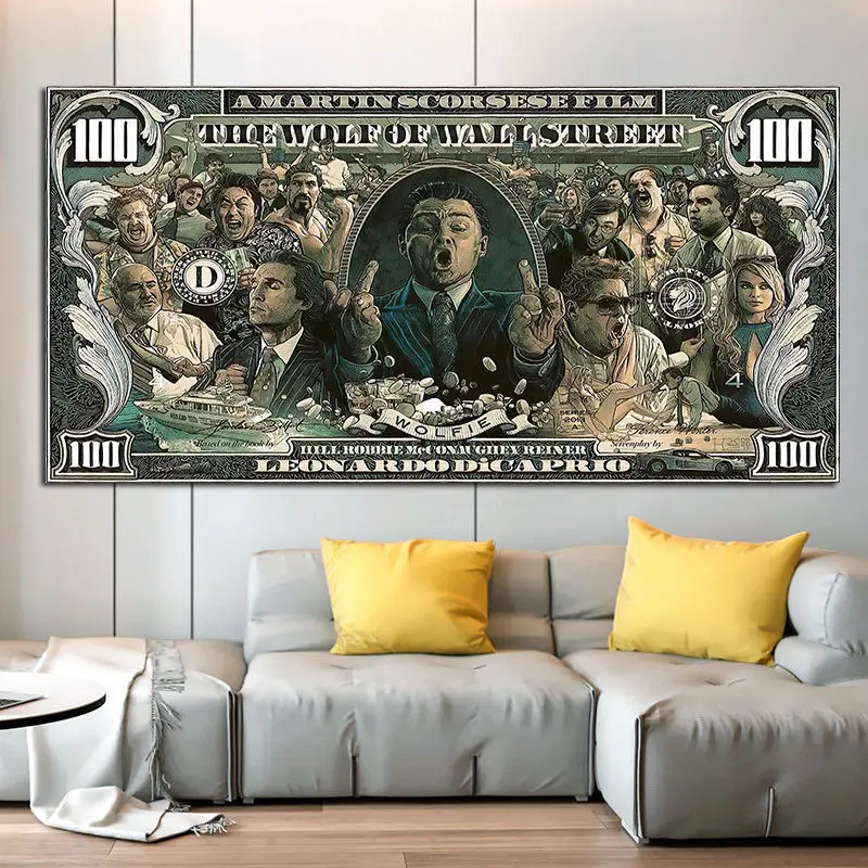 Граффити уличные деньги искусство 100 доллар холст картина плакат и печать волк стены улица поп Куадрос для гостиной без рамки