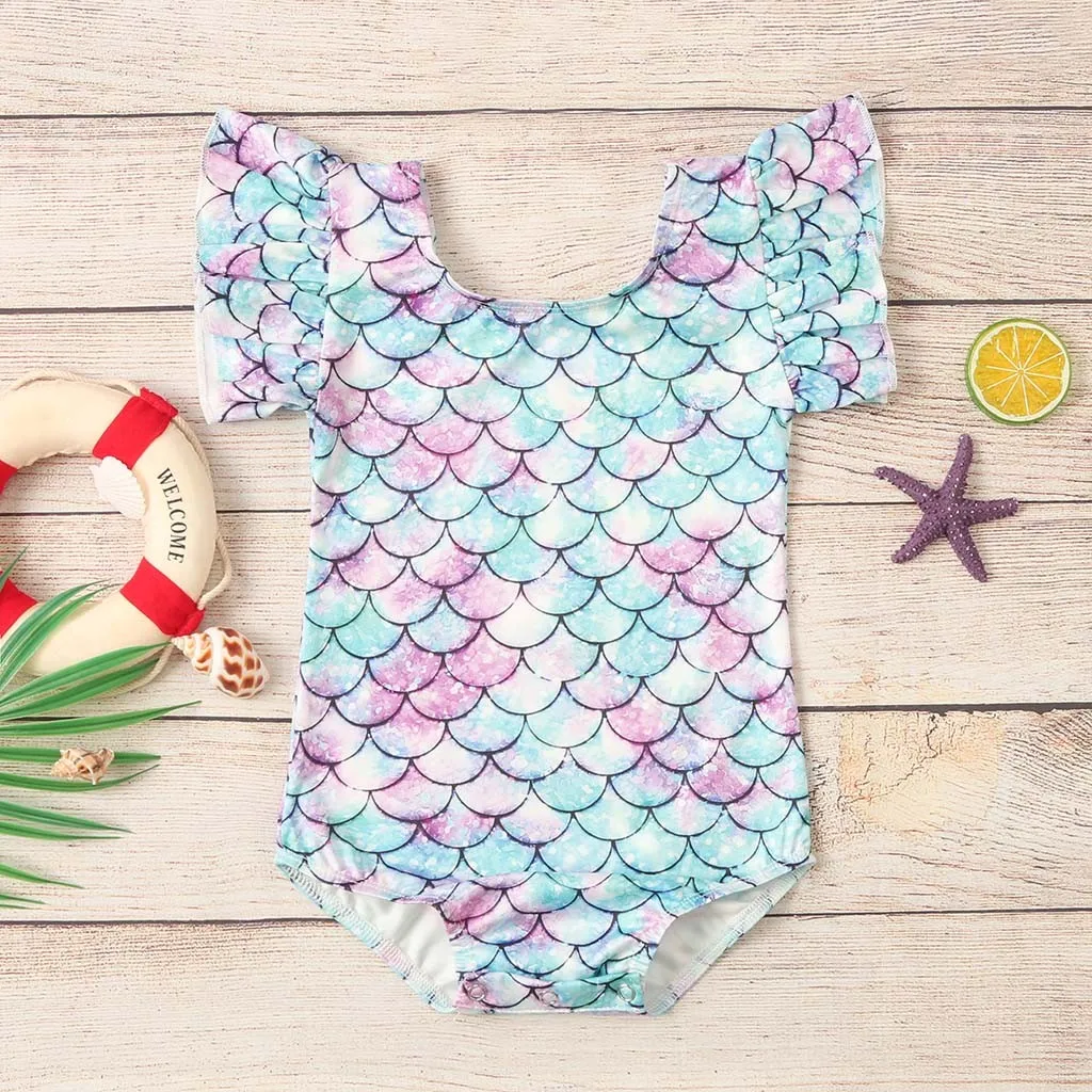 Купальник TELOTUNY для маленьких девочек, летний слитный купальник с оборками и рукавами-фонариками, милый детский пляжный купальник с круглым вырезом, купальный костюм
