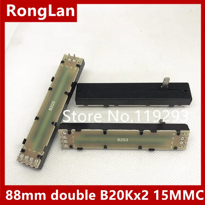 Потенциометр двойной фейдер B20Kx2, B10KX2, B10K, B20K, 15MMC, 8,8 см, 88 мм, 2 шт.лот