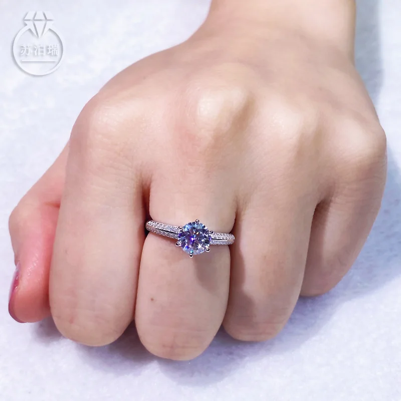 100% бриллиантовое кольцо с шестью когтями, Корона 1 карат, цвет 1 ...
