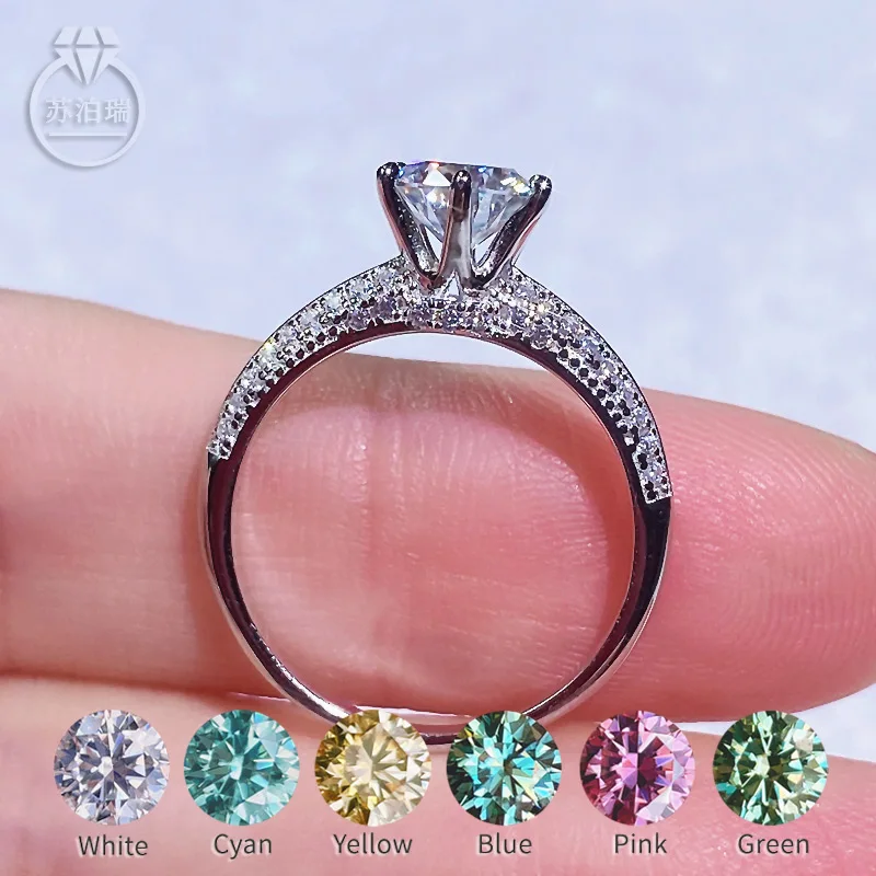 1-2 карат муассанит Кольца цвет D VVS синий розовый желтый зеленый ...