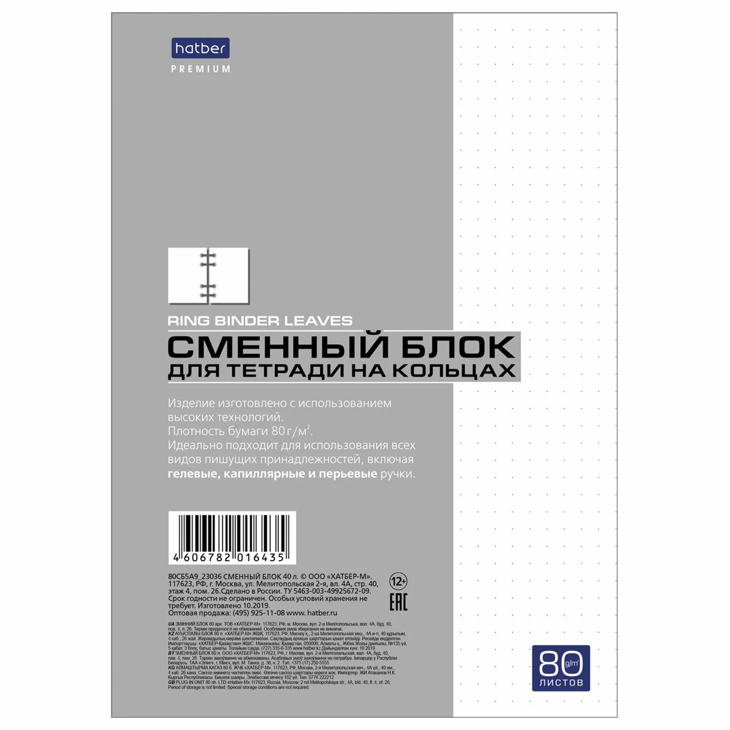 Сменный блок к тетради на кольцах А5 80 л. HATBER "Premium", Белый, блок в точку, 80СБ5A9_23036 (6 шт)