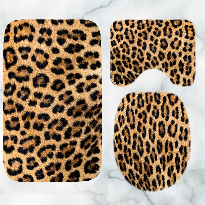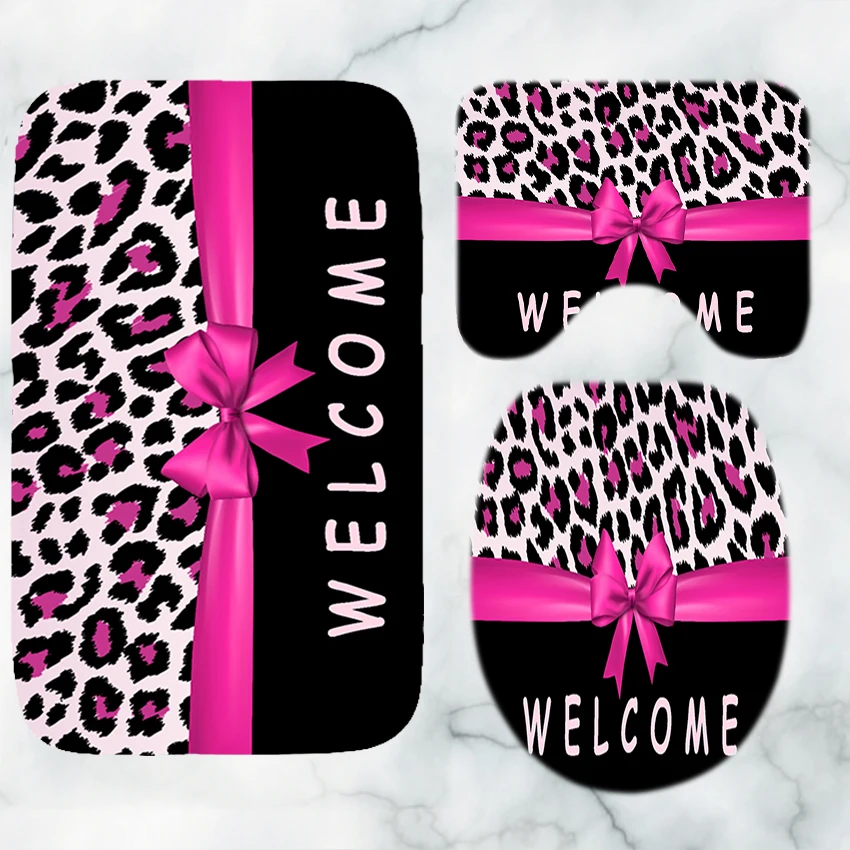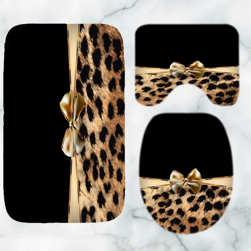 Набор ковриков для ванной с черным бантом, леопардовым гепардом и принтом животных, коврики для ванной, коврик, нескользящий напольный коврик, аксессуары для ванной комнаты, Декор