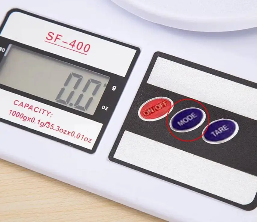Большой и яркий дисплей отлично отображает крупные цифры. Есть возможность выбрать меру измерения - унции или граммы с помощью кнопки "Mode".