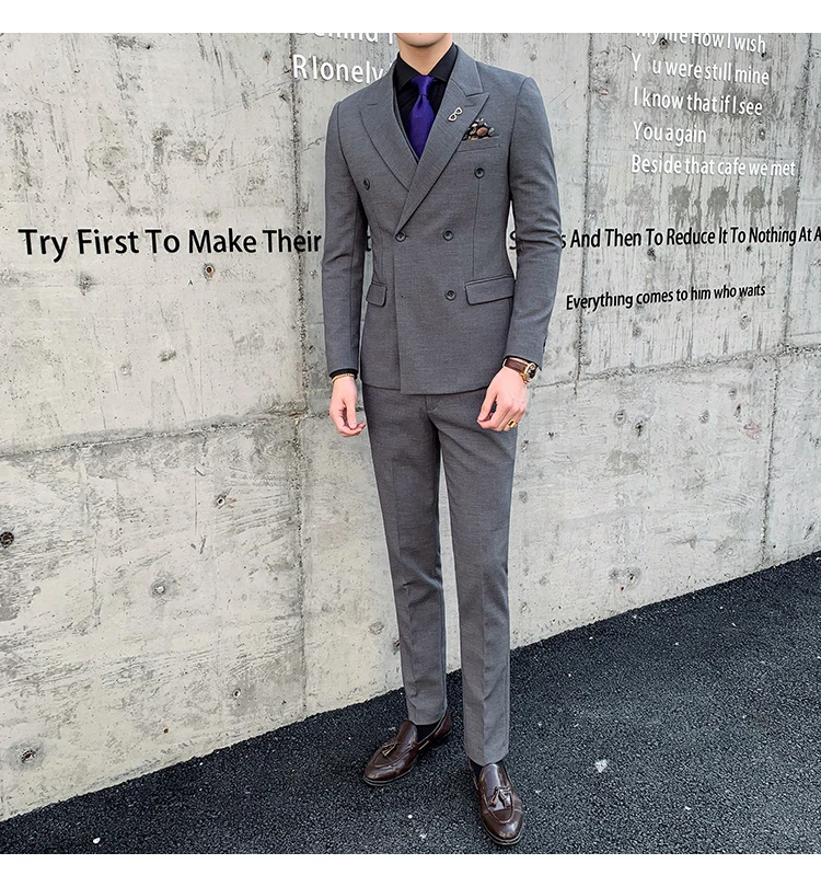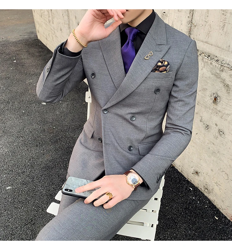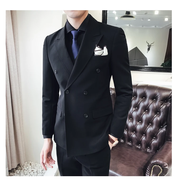 Мужской деловой костюм из двух предметов, однотонный двубортный пид...