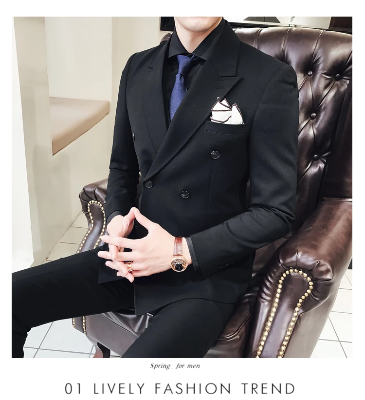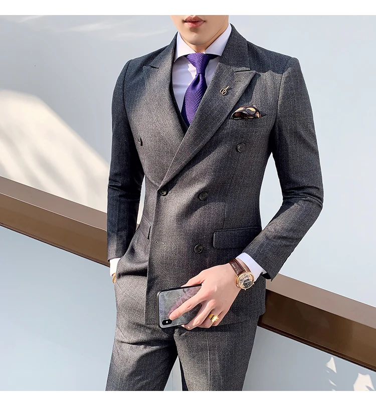 Комплект из трех предметов, Блейзер, жилет и брюки, модный мужской ...