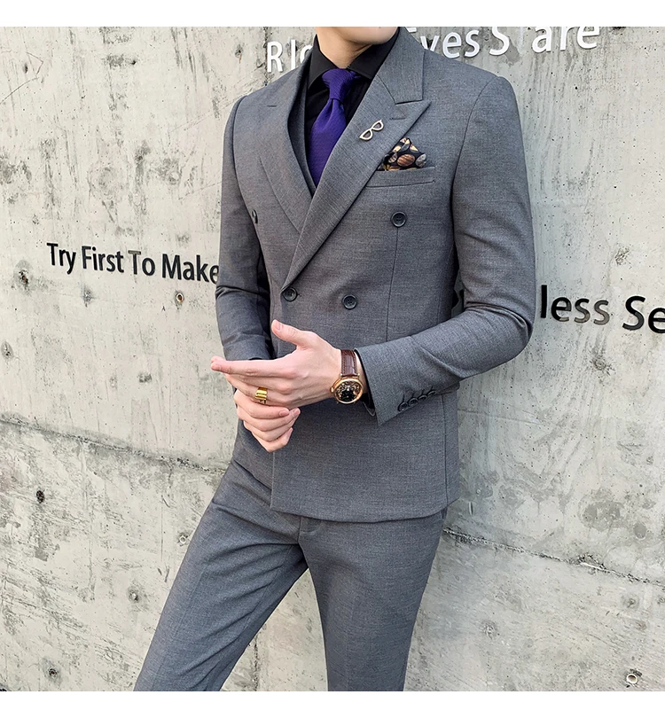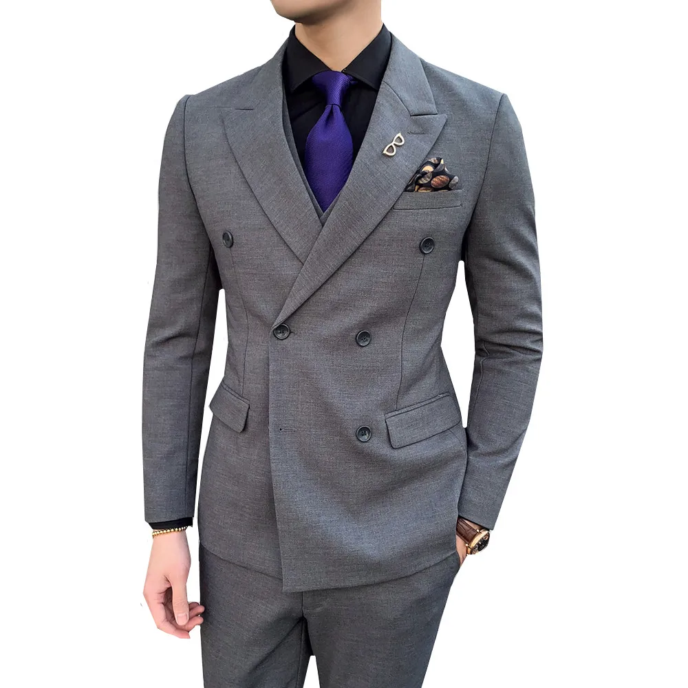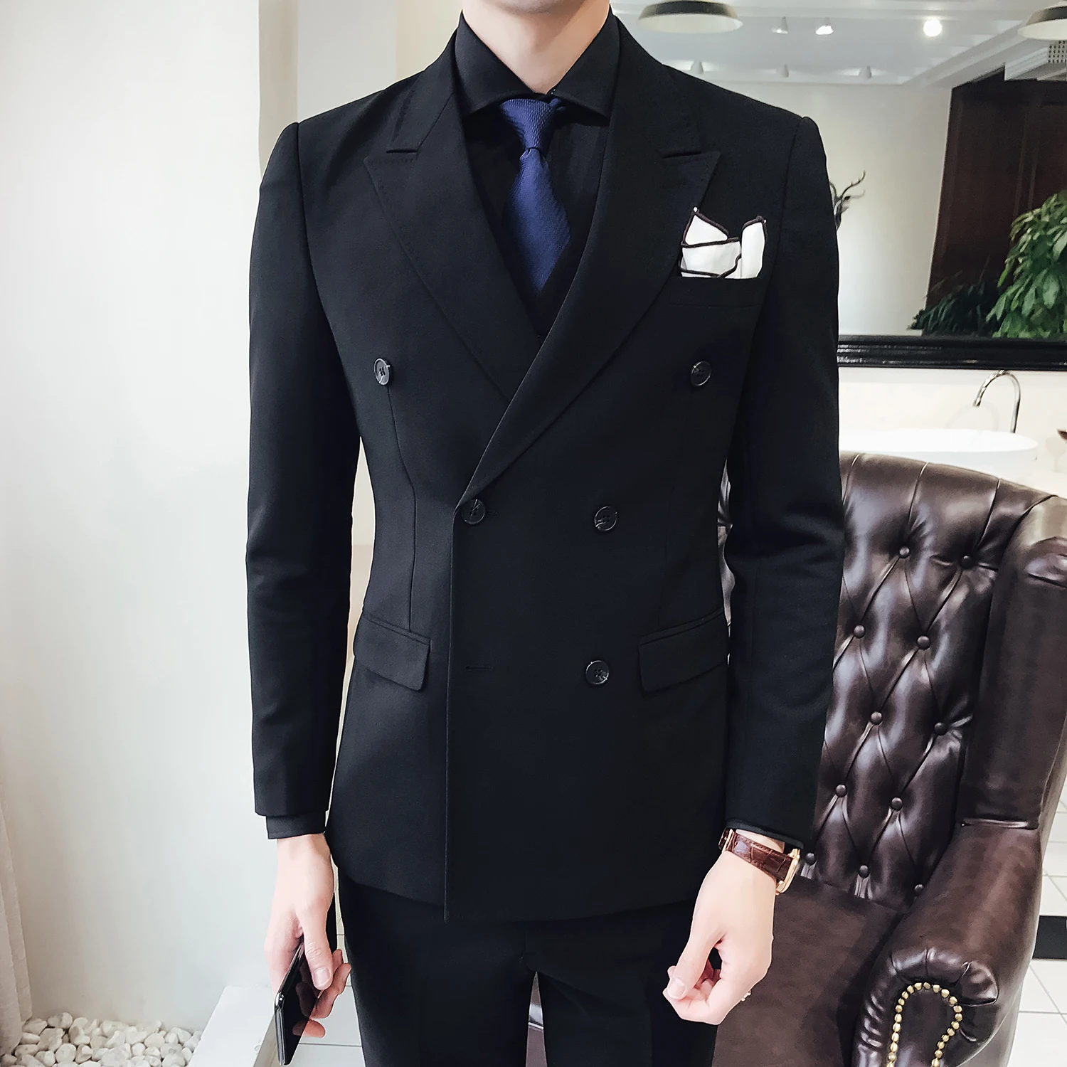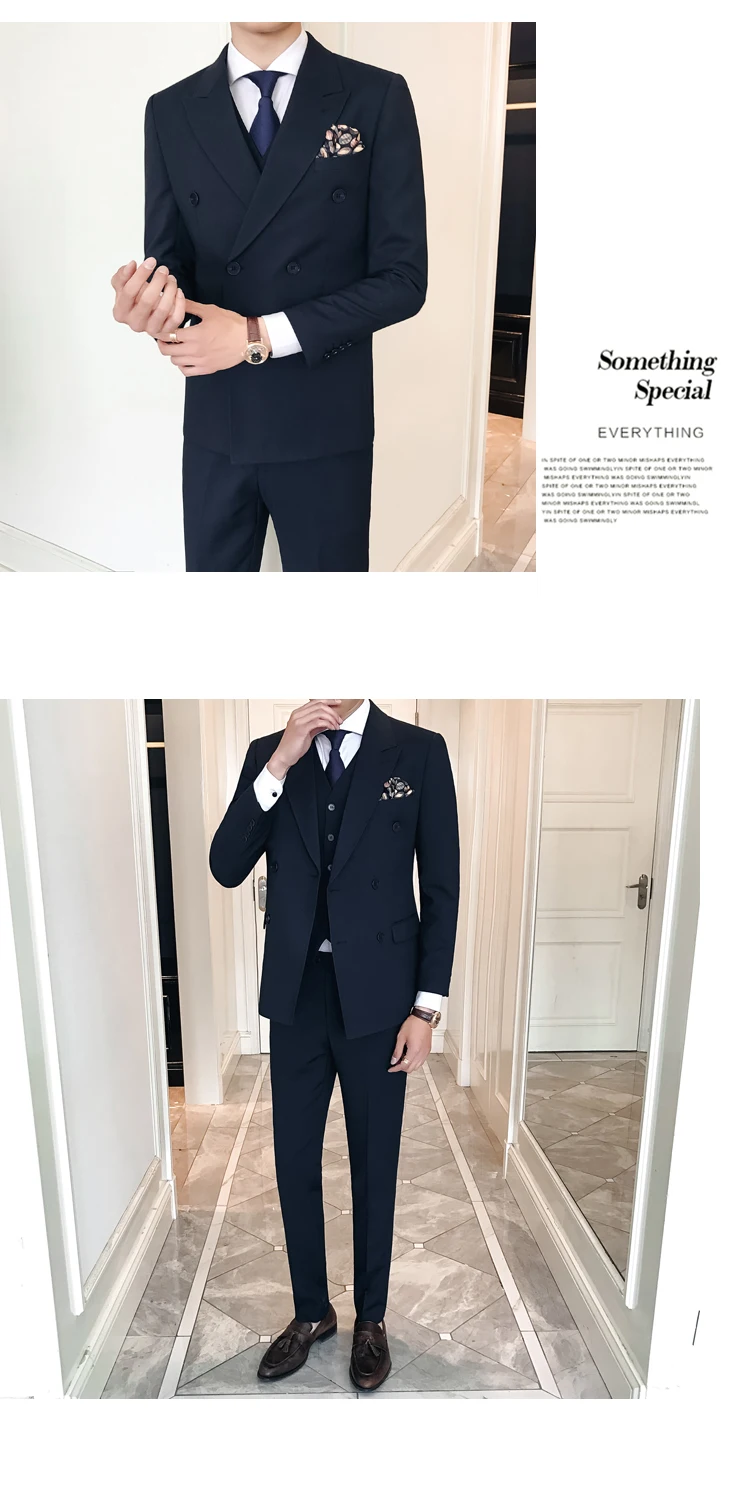 Костюм мужской из трех предметов, жилет и брюки, деловой Повседневный двубортный Блейзер, брюки для джентльмена, свадьбы, вечеринки
