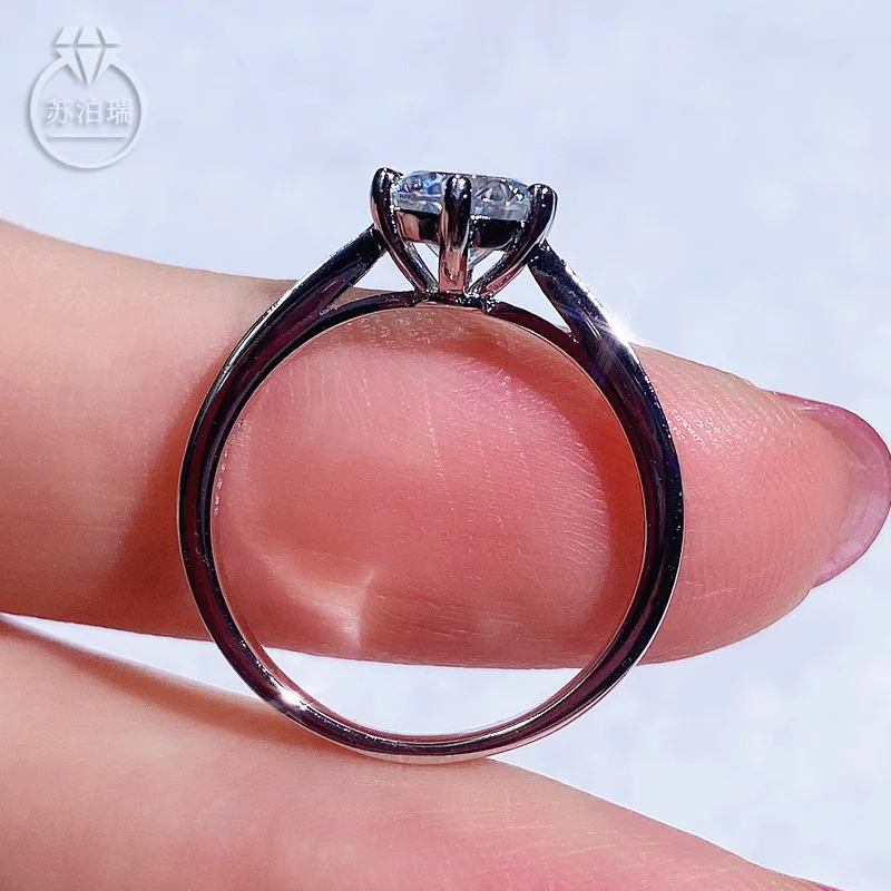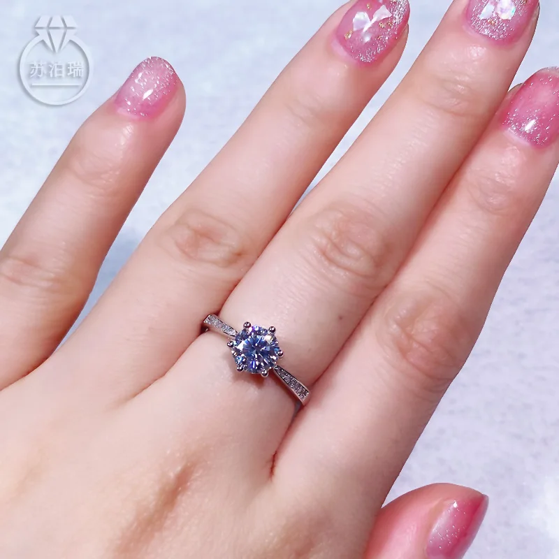 100% бриллиантовое кольцо с шестью когтями, Корона 1 карат, цвет 1 ...