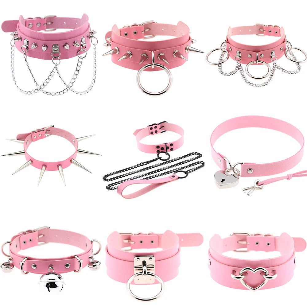 Женское кожаное ожерелье-чокер, розовое колье на шею, в Корейском стиле, готика, Харадзюку