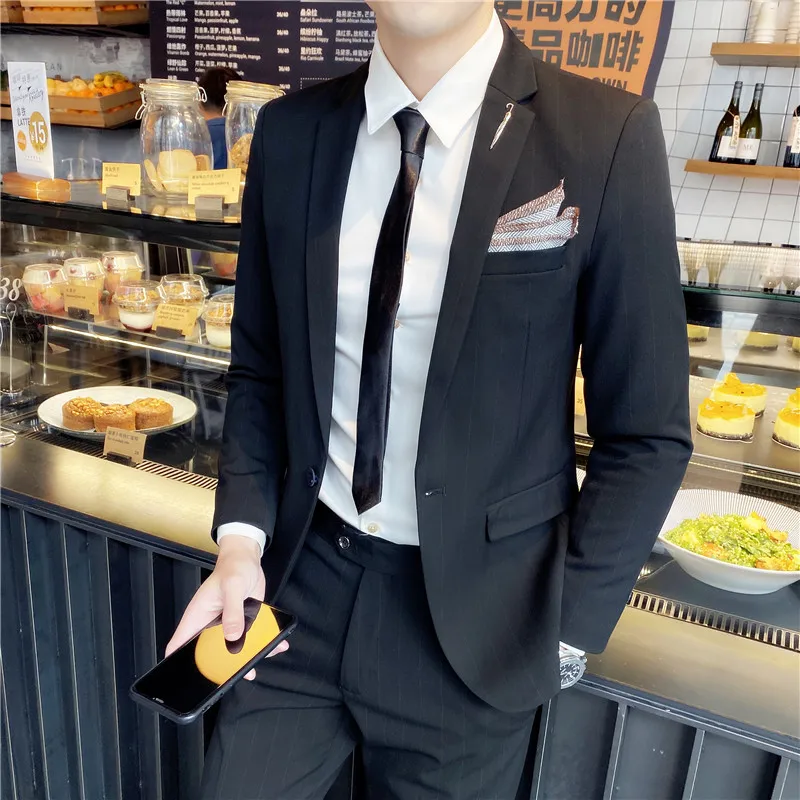Костюм из трех предметов, пиджак и брюки, модный мужской повседневн...