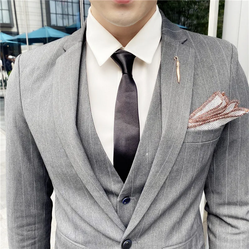 Пиджак, брюки, жилет, комплект из 3 предметовмодный новый мужской повседневный деловой костюм в полоску для жениха, пальто, брюки, жилет