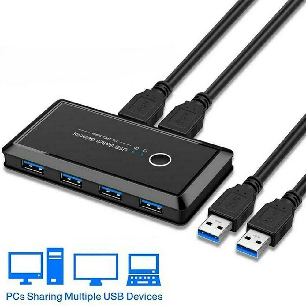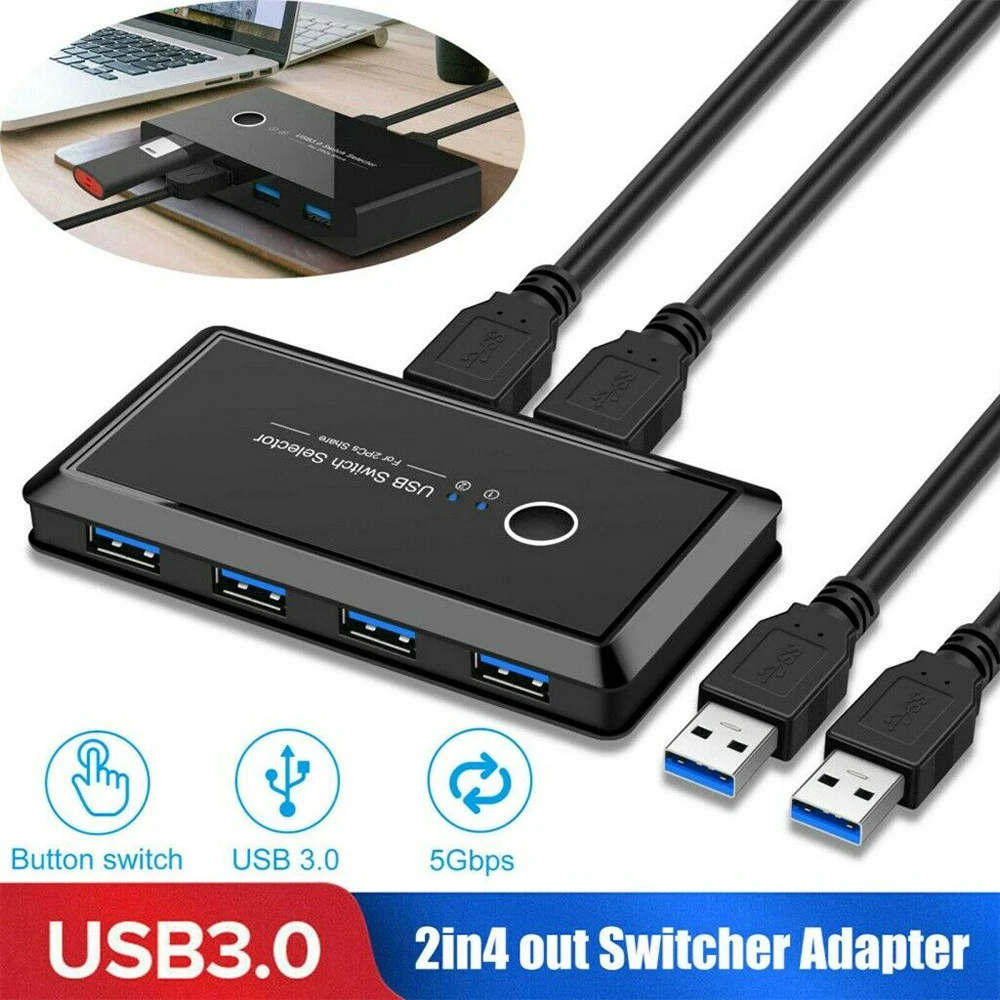 Переключатель USB 3,0, переключатель, 2 порта, совместное использование 4 устройств USB 2,0 для клавиатуры, мыши, сканера, принтера, Kvm, переключатель, концентратор