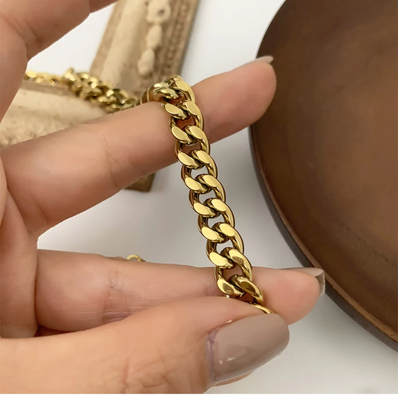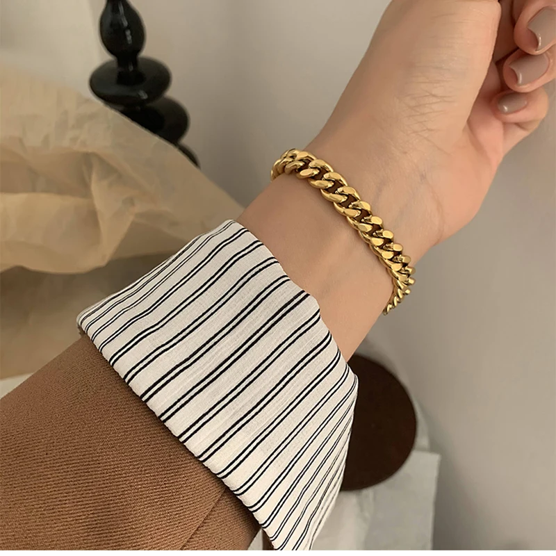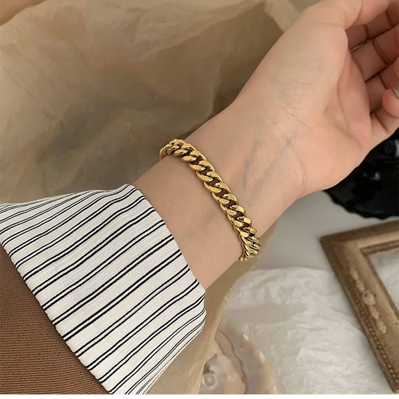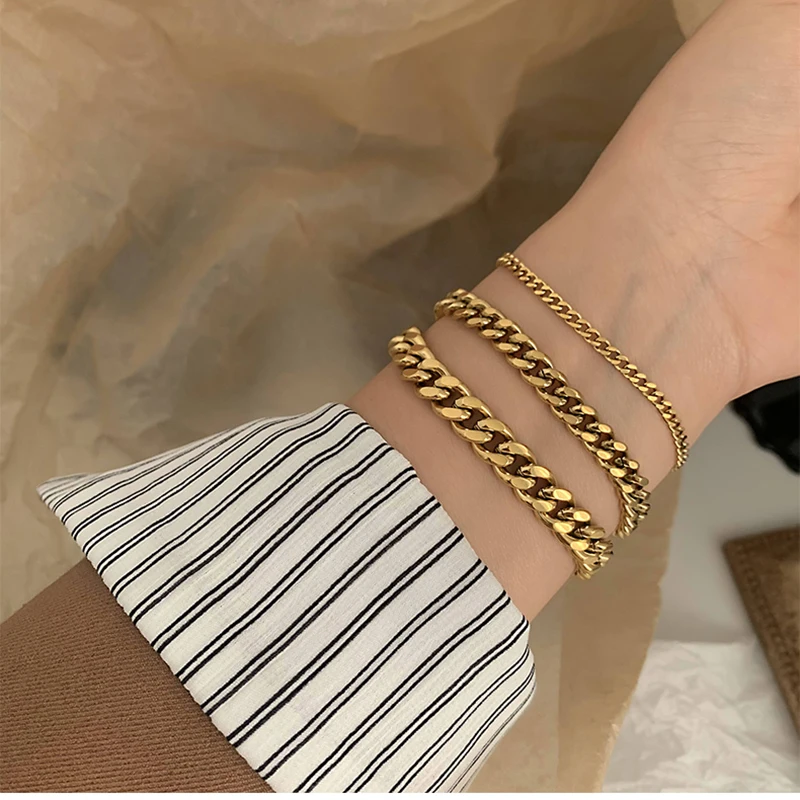 2021 новый не тускнеет Нержавеющаясталь 18k позолоченные Bold кубинская цепь Браслеты браслеты для Для женщин женские Браслеты на руку