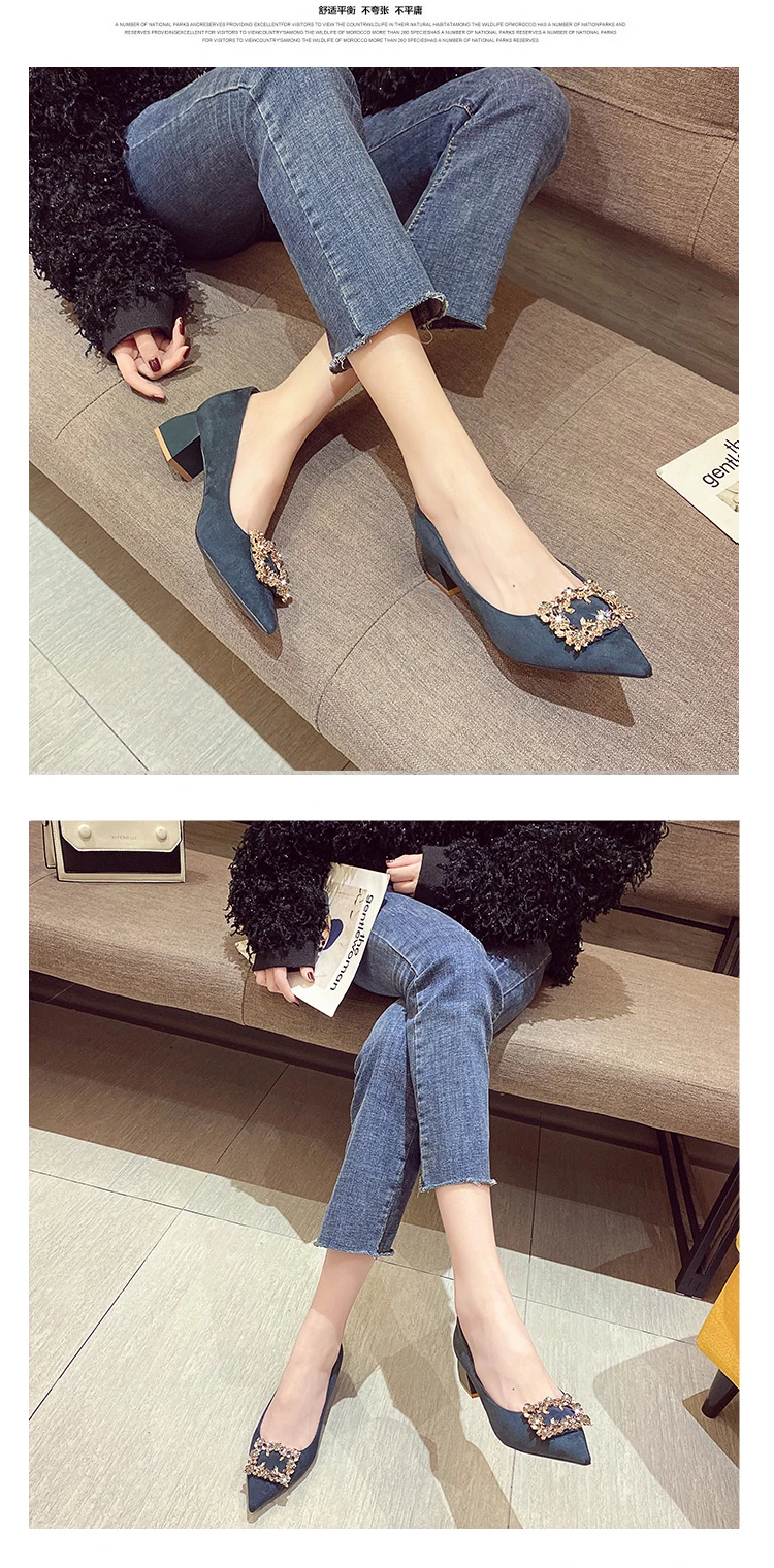Женские туфли-лодочки; Замшевые туфли-лодочки с острым носком на высоком квадратном каблуке, туфли-лодочки на высоком каблуке Стразы украшения вечерние туфли