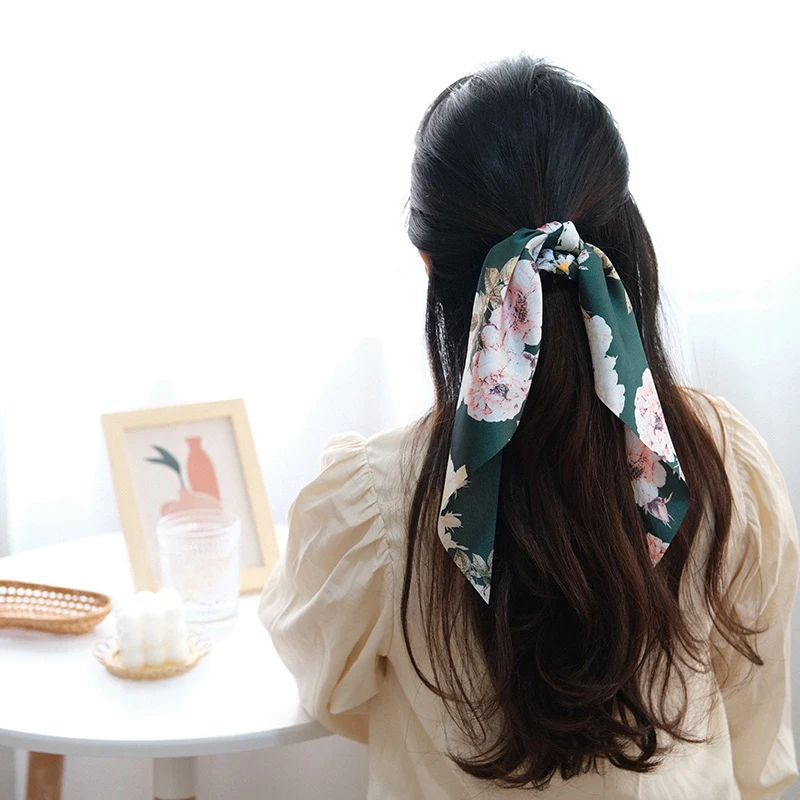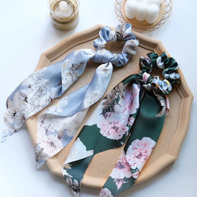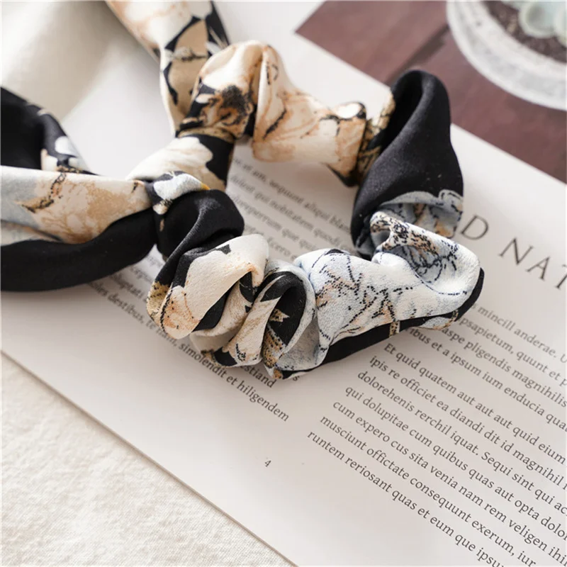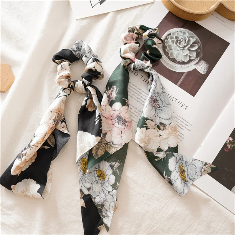 Богемный винтажный шелковый шарф с принтом, резинки для волос для женщин и девочек, элегантные эластичные резинки для волос с цветочным принтом, аксессуары для волос