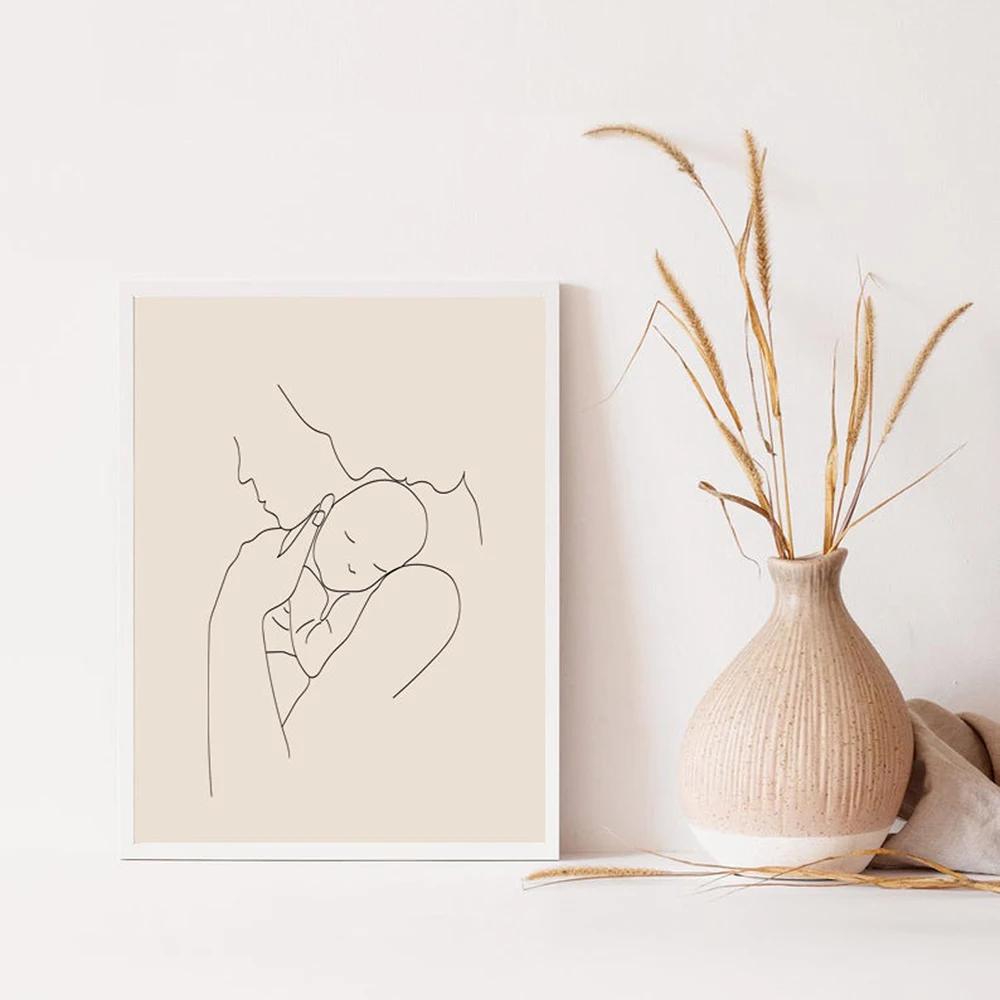 Плакат с изображением семейной пары, для новорожденных, мамы, руки, линия, искусство, плакат для детской, настенные картины, абстрактная живопись, принты, декор детской комнаты