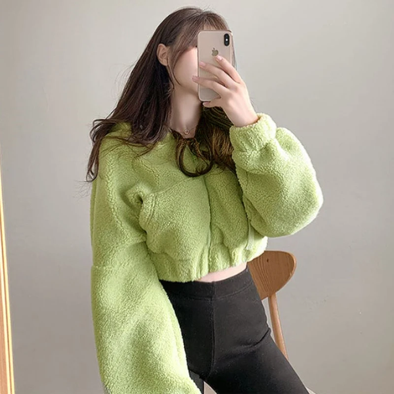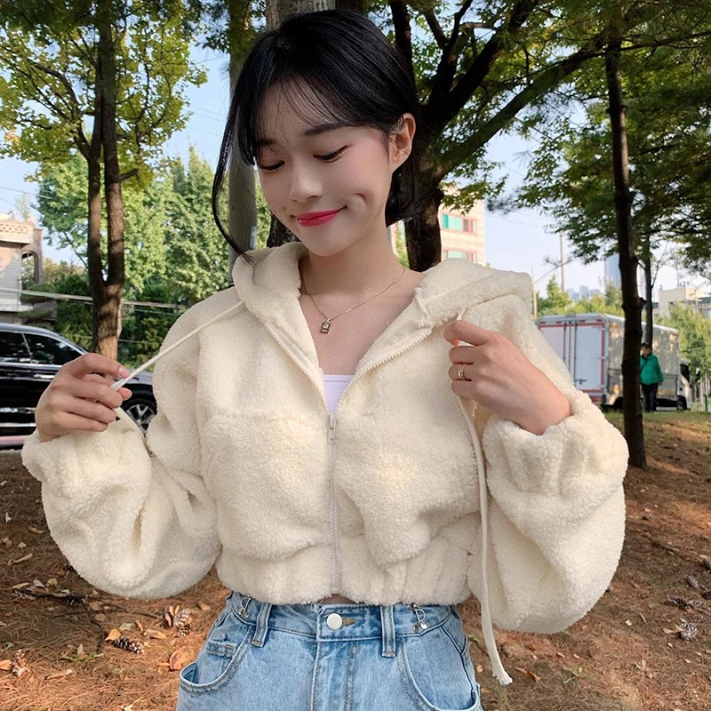 2021 новая женская одежда больших размеров с мехом модная короткая куртка с капюшоном на молнии для женщин Зимние черные сапоги модные повседневные 90s Harajuku в Корейском стиле