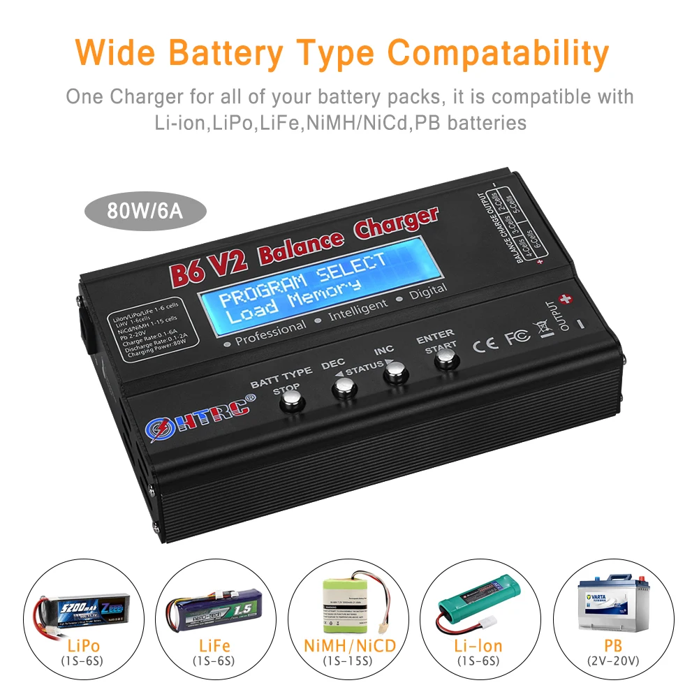 Балансирующее зарядное устройство HTRC Imax B6v2, 80 Вт, 6 А, зарядное устройство LiPo 15 в, 6 А переменного тока для LiIonLiFeNiCdNiMHHighLiHV, зарядное устройство с дистанционным управлением