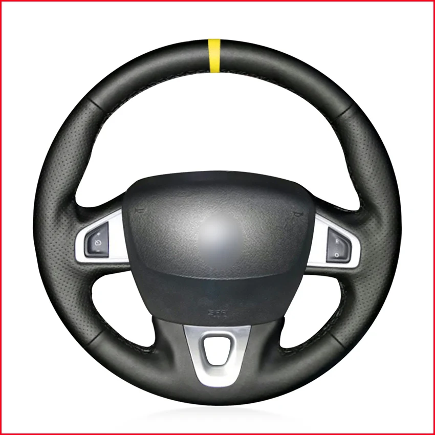 Чехол на руль из искусственной кожи с желтым маркером для Renault Megane 3 (Coupe) RS 2010 2011 2012 2013 2014 2015 2016
