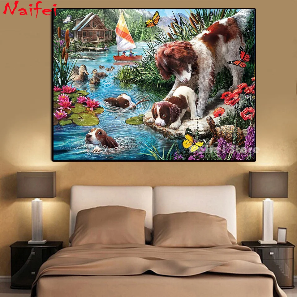 Алмазная вышивка сделай сам, европейская красота и собака, пейзаж 5...