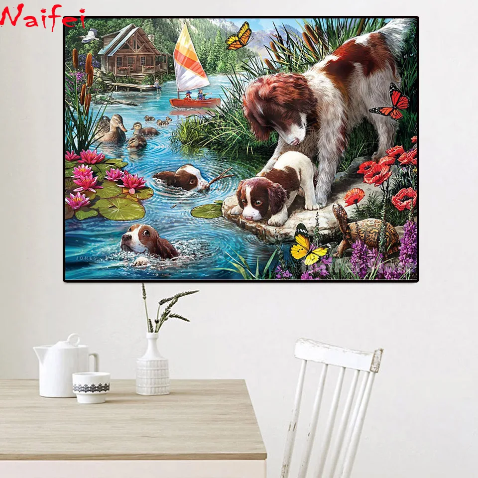 Spaniel DIY 5D алмазная живопись Алмазная вышивка собаки полная круглая дрель животное ферма Вышивка крестом мозаика Стразы Декор для дома