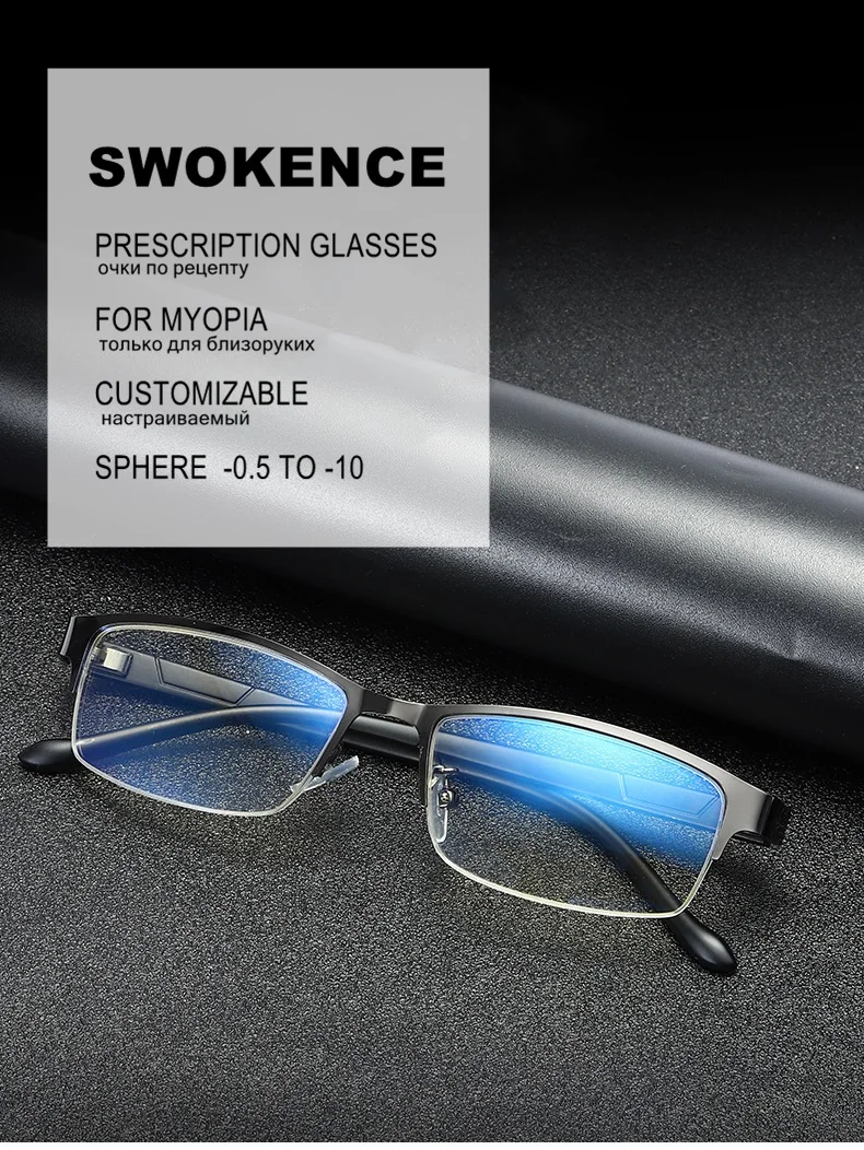 SWOKENCE близорукие очки для близорукости, очки с диоптриями-0,5 до-10 Для женщин мужчин с плоскими стеклами и половинной рамкой оптика диоптрий Анти Blue Ray фотохромные F079