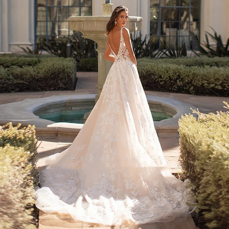 Без рукавов с вырезом в форме буквы V свадебное платье А-силуэта с ...