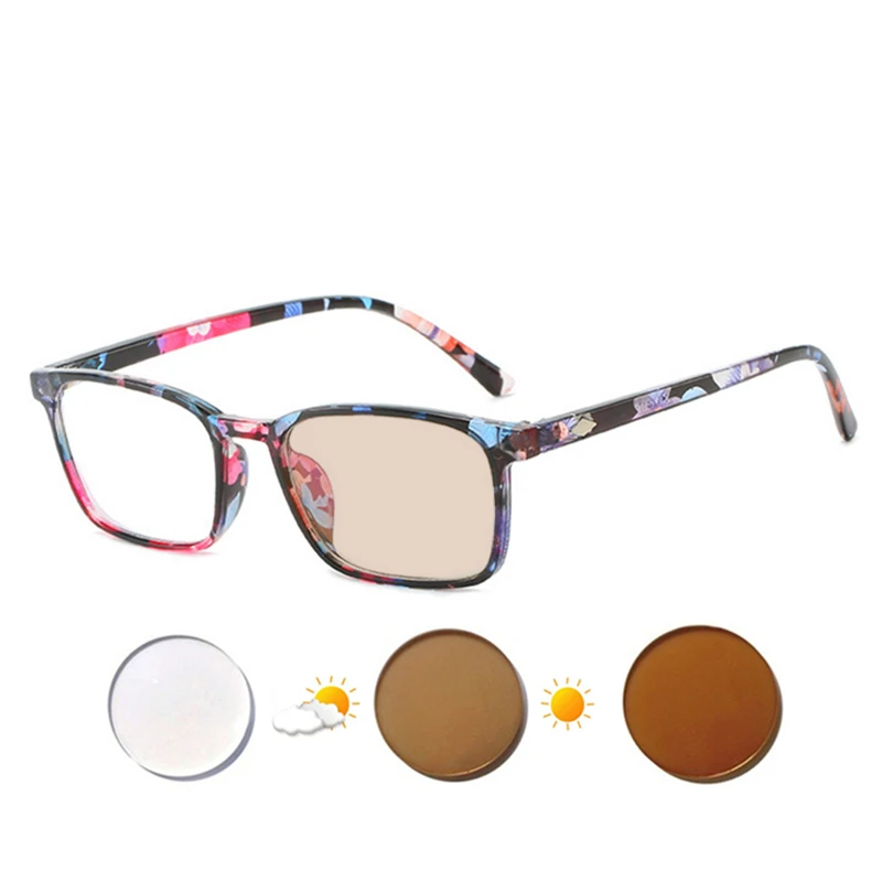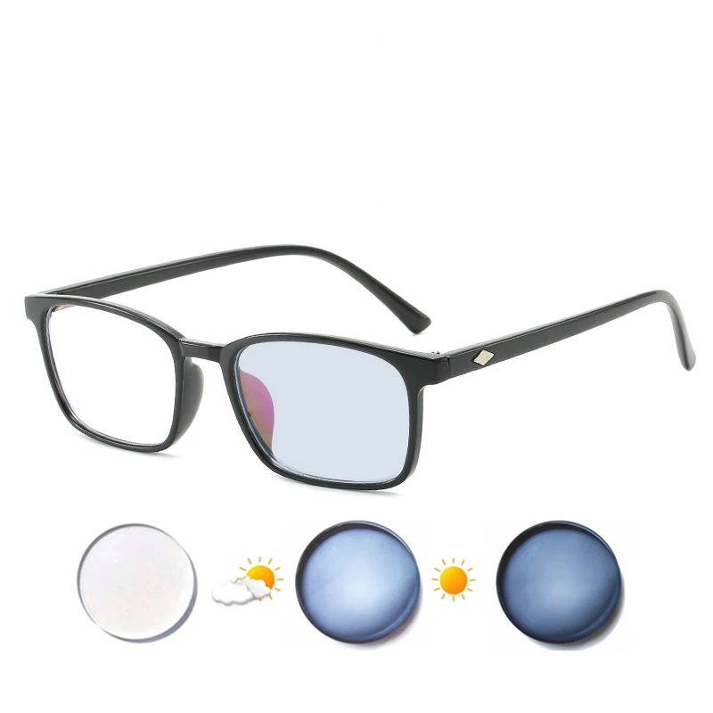 О фотохромные линзы, они будут прозрачными и бесцветными в помещении или в темных местах, но они изменят цвет на открытом воздухе или на солнце, чтобы защитить ваши глаза от сильного светильник.