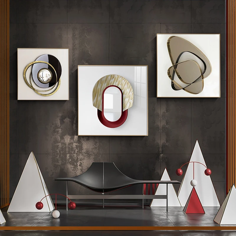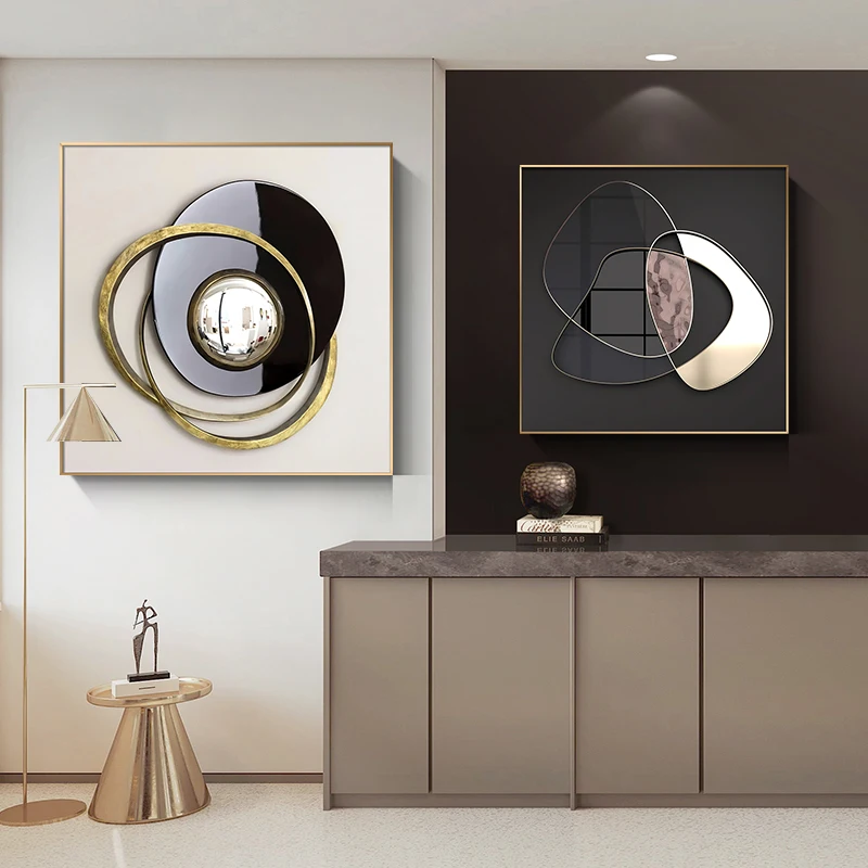 Абстрактные металлические светлые Роскошные Настенные абстрактные геометрические постеры на холсте и принты для украшения гостиной, современные картины