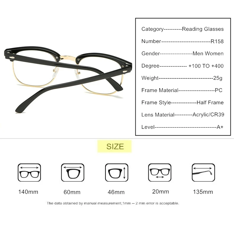 Это очки по рецепту для дальнозоркости или дальнозоркости, перед заказом, пожалуйста, внимательно проверьте, соответствует ли ваш отчет о видении товару.