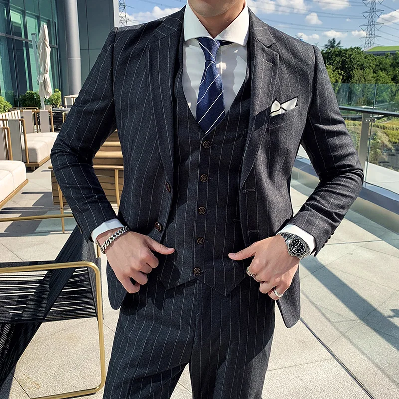 Комплект из 3 предметов, куртка и штаны, жилет, костюм для джентльмена, приталенный, полосатый Блейзер, пальто, брюки, мужское свадебное платье, одежда для жениха