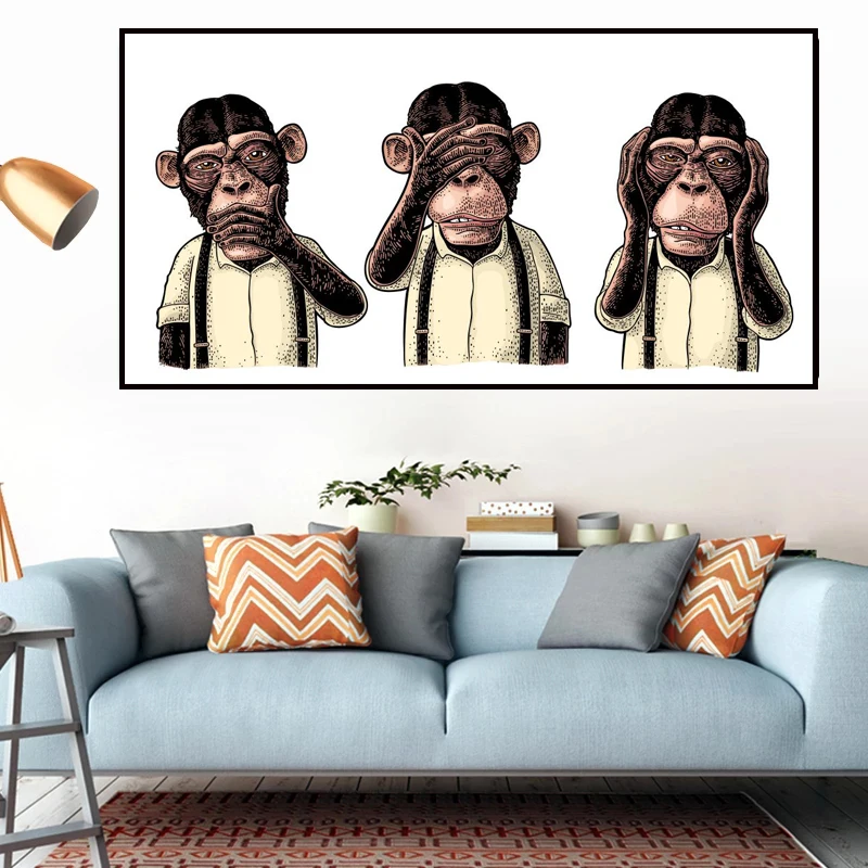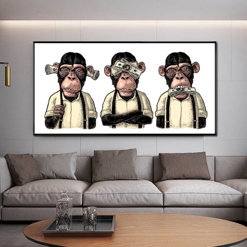 Абстрактные картины, смеющиеся обезьяны, граффити, холст, плакаты и...