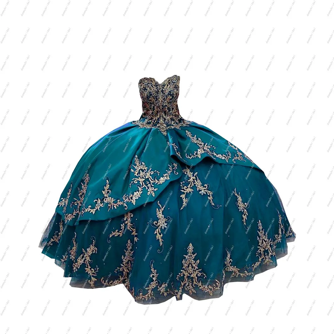 100% новинка, золотая вышивка, длина до пола, Милая, цветочный лиф, корсет на спине, расшитые бисером и блестками, Vestido De 15 Anos Quinceanera, вечерние платья для выпускного вечера, свадебные платья для гостей для женщин, милые 16 Бальные платья