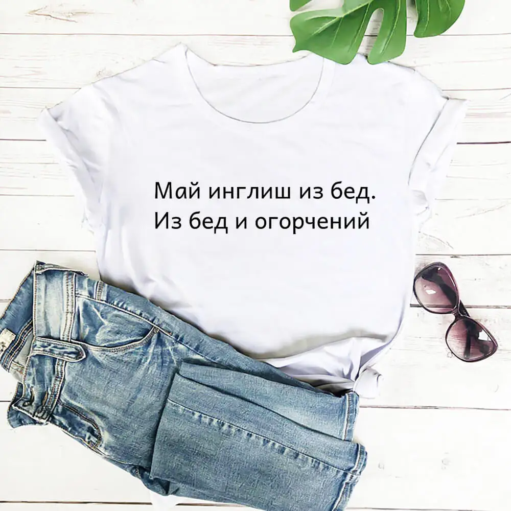 Май инглиш из бед русская буква печать новое поступление женская прикольная летняя хлопковая футболка с коротким рукавом майка женская футболка