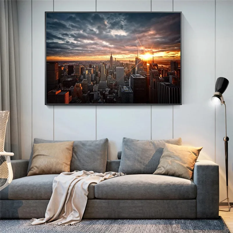 Картины на холсте с изображением заката Нью-Йорка, плакаты и принты на стену Манхэттена, картина для гостиной, офиса, картины без рамки