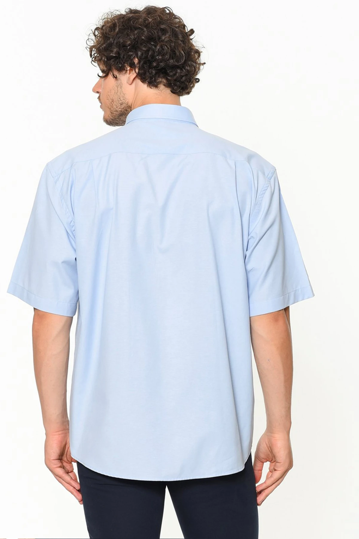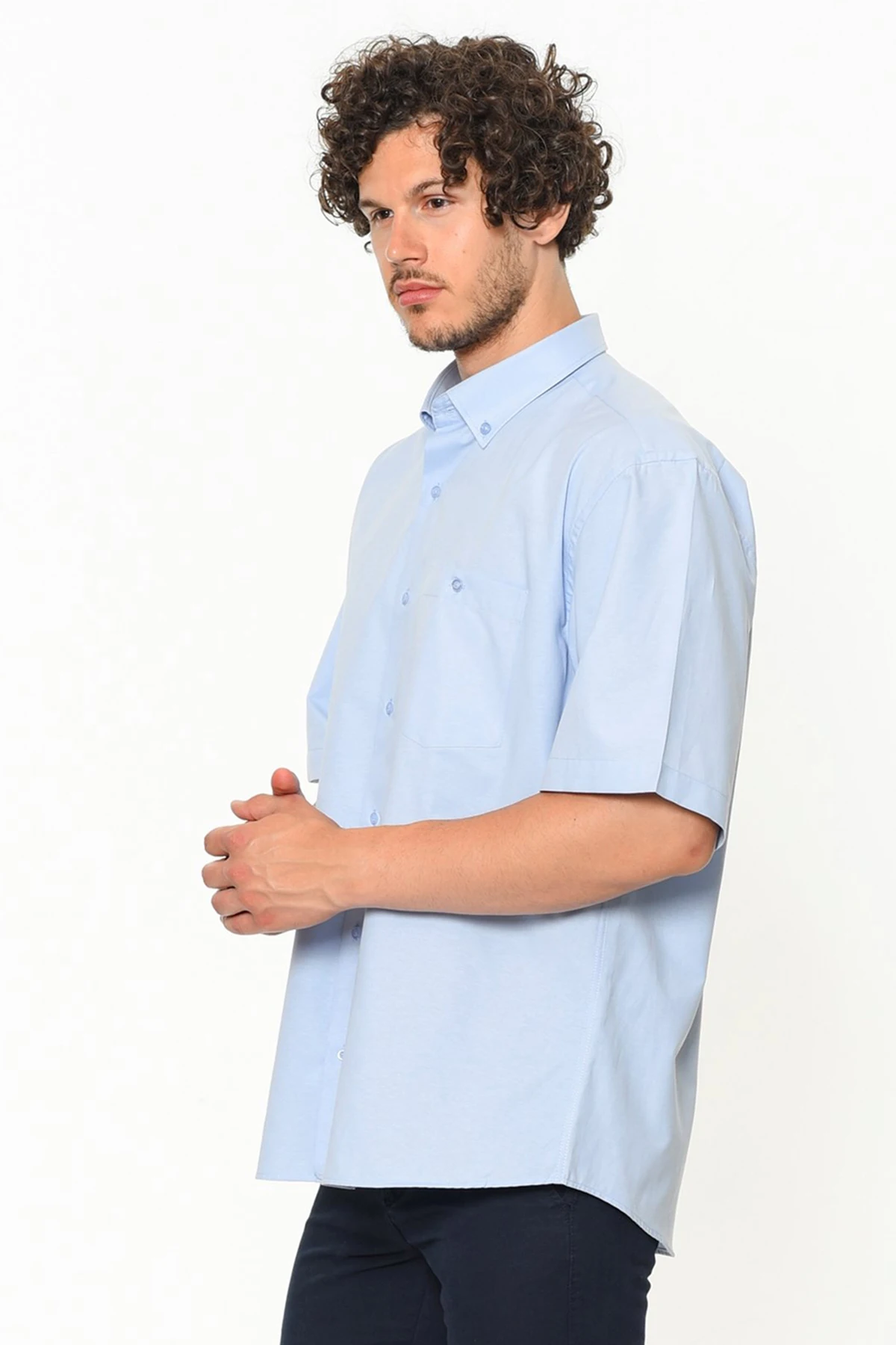 Рубашка мужская хлопковая, с коротким рукавом, с карманами, голубая, повседневная, свободная, большого размера