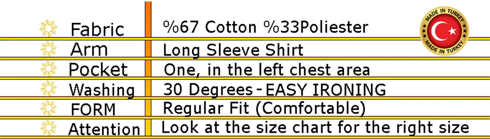 Состав: 67% хлопок, 33% полиэстерМужская рубашка с коротким рукавом и одним карманомСделано в ТурцииПожалуйста, внимательно ознакомьтесь с таблицей размеров, чтобы найти подходящий вам размерДиапазон веса, указанный в таблице, для роста 1,75.Или если вы сообщите нам свой рост, вес и размер области живота, мы скажем вам подходящий размер.Мы ответим на ваши сообщения в течение 10 минут