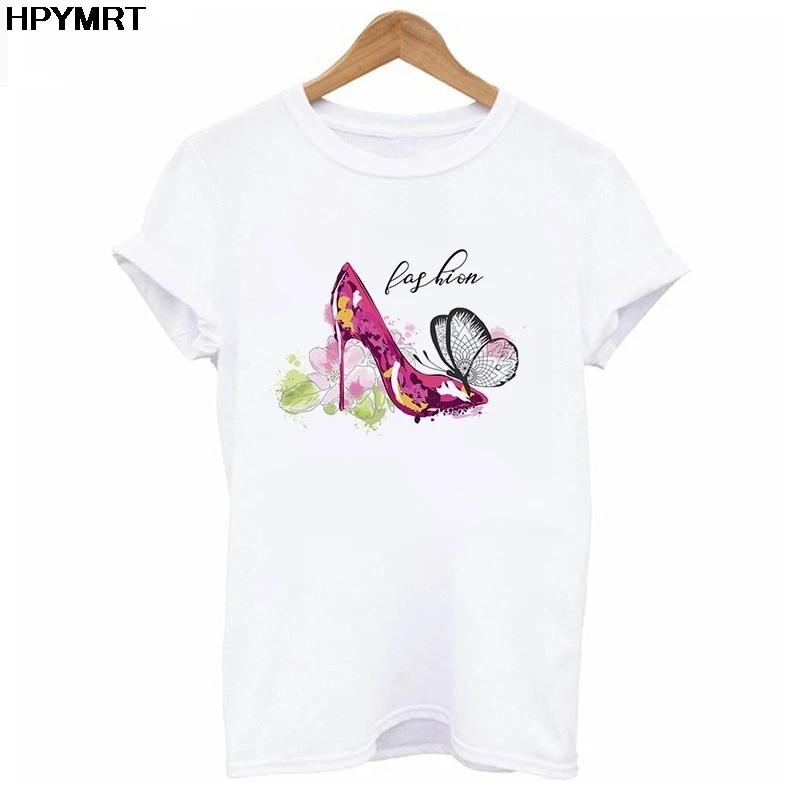 Белая футболка женская рубашка модная обувь на высоком каблуке Футб...