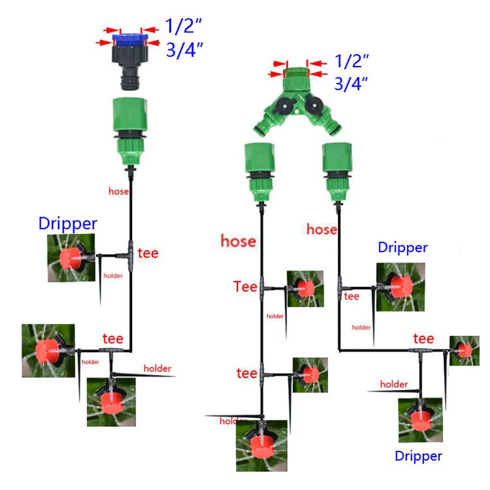 Автоматическая система капельного орошения для сада, 5-60 м, 14 дюйма, 8 отверстий, наборы для самостоятельного полива с регулируемой зеленой капельницей