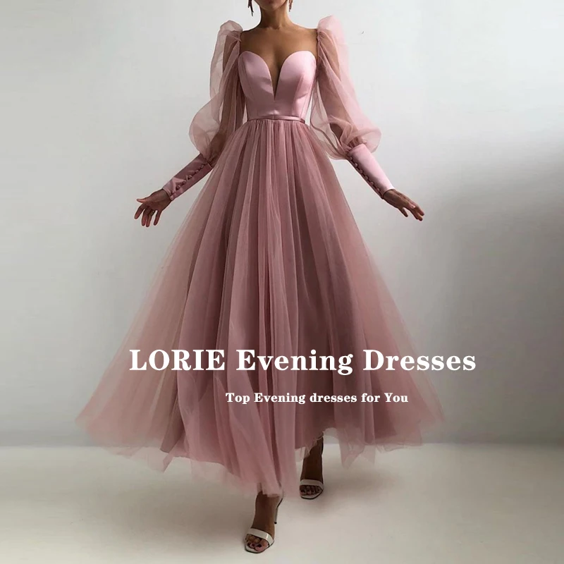 Пыльно-розовое арабское вечернее платье-трапеция LORIE, на платья для выпускного вечера, любимая девушка год, для свадьбы, выпускного, тюль с длинным рукавом