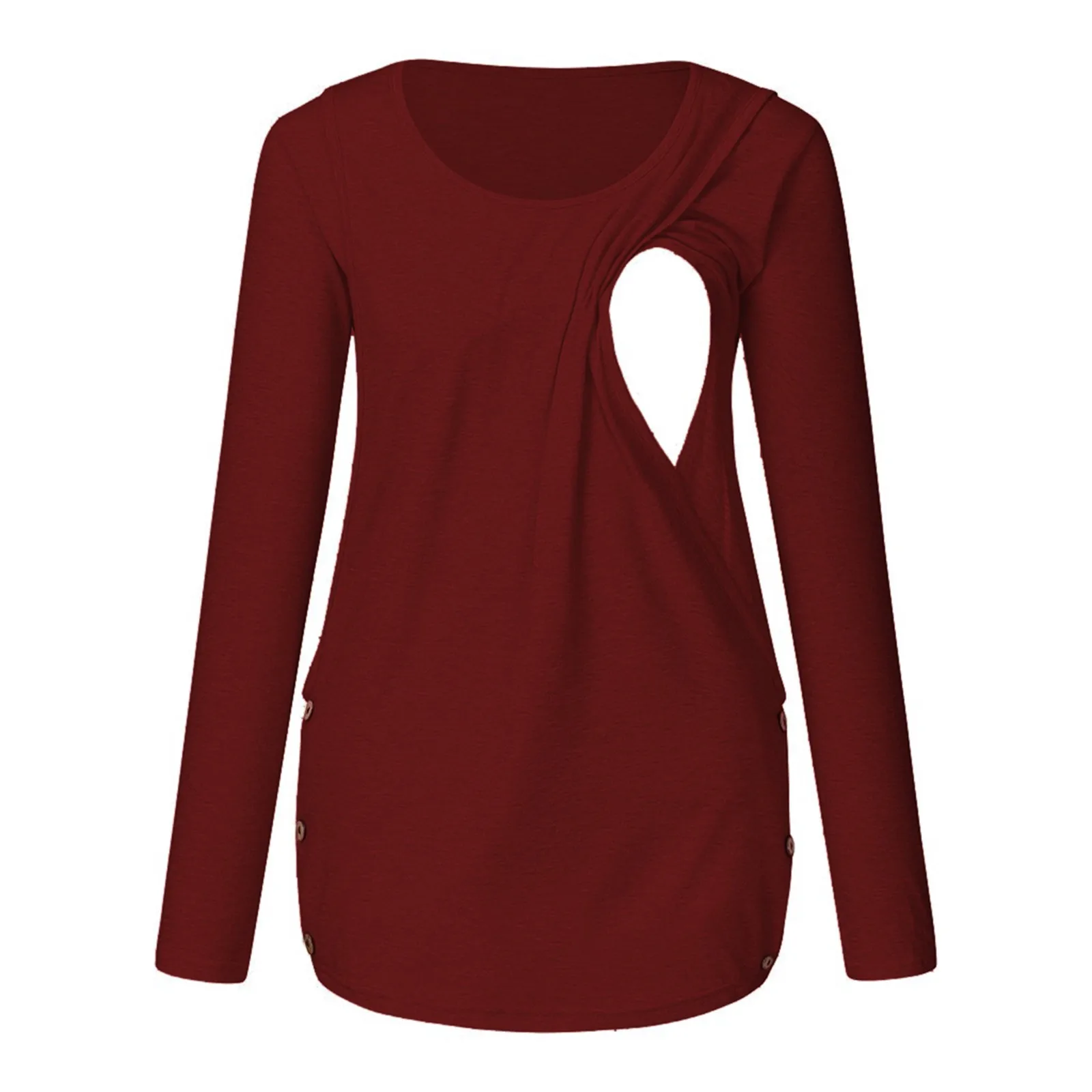 Женская туника с длинными рукавами и боковыми пуговицами для беременных